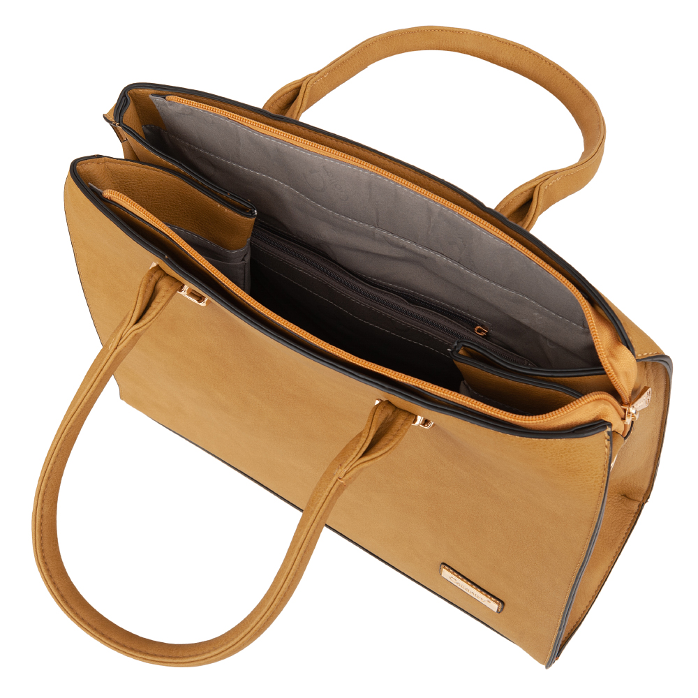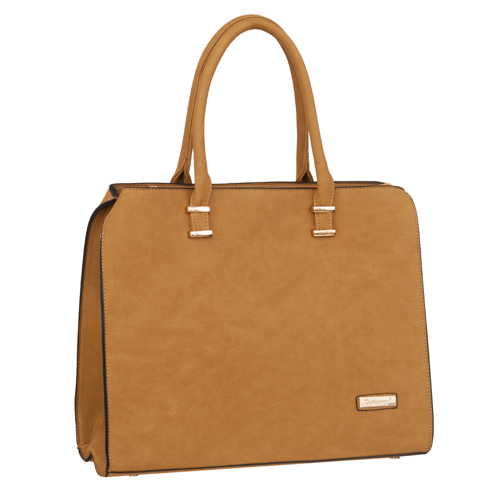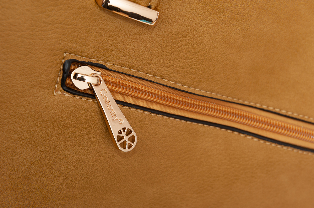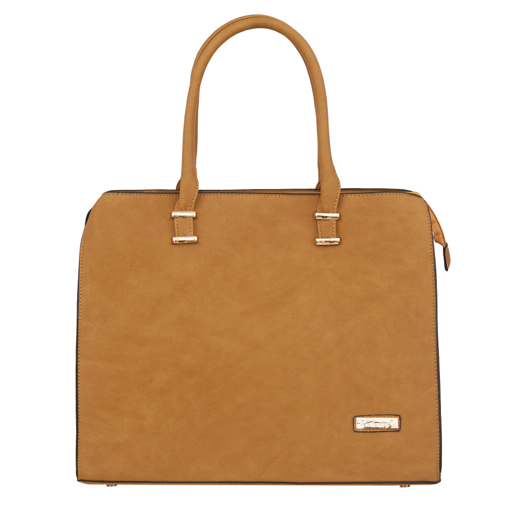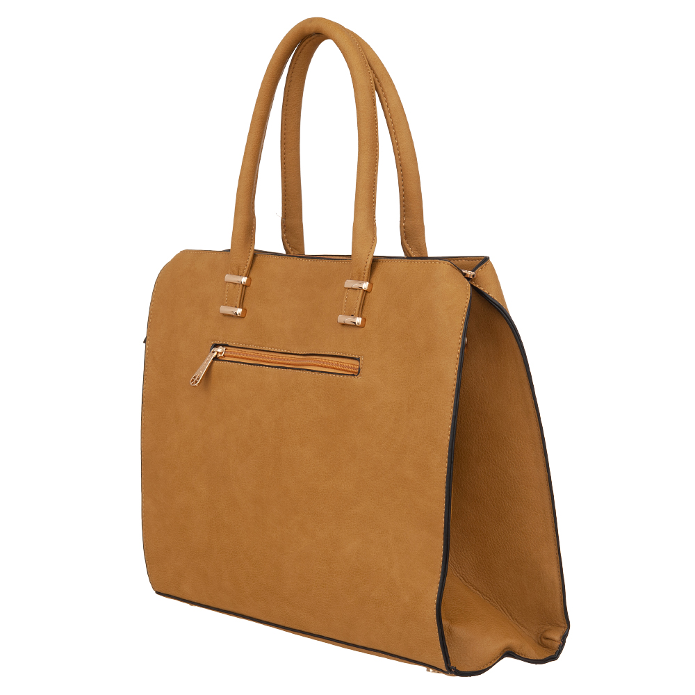 Modna, klasyczna skórzana torebka wykonana z wysokogatunkowej gładkiej skóry ekologicznej wysokiej jakości. Zamykana z góry na suwak na całej szerokości. Torebka jednokomorowa. Wewnątrz trzy kieszonki na zamek, jedna na telefon + dodatkowa kieszeń na drobiazgi. Wnętrze wykończone trwałą, ciemną podszewką. Dodatkowo z tyłu torebki kieszonka na suwak. Torebka od spodu usztywniona oraz podbita nóżkami, co chroni ją przeciw uszkodzeniom i zadrapaniom. Elementy wykończenia w kolorze złotym.