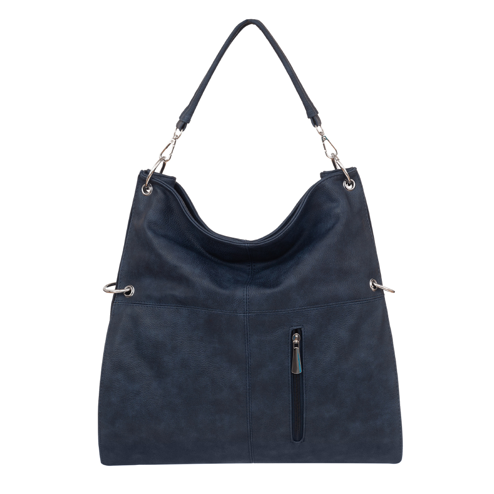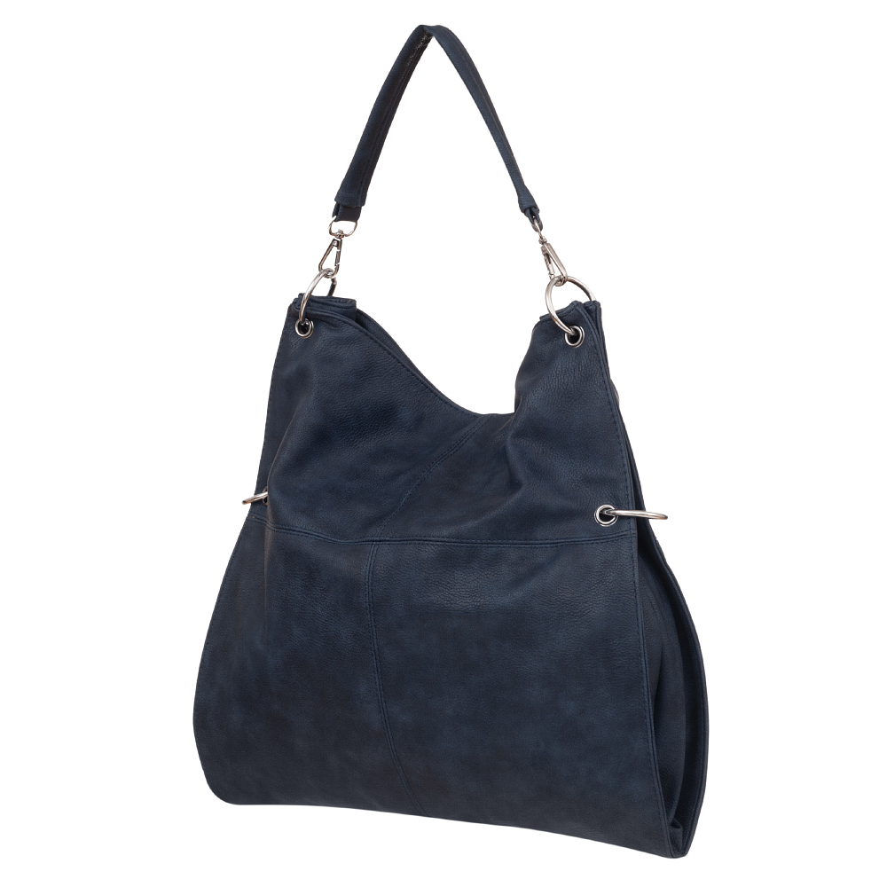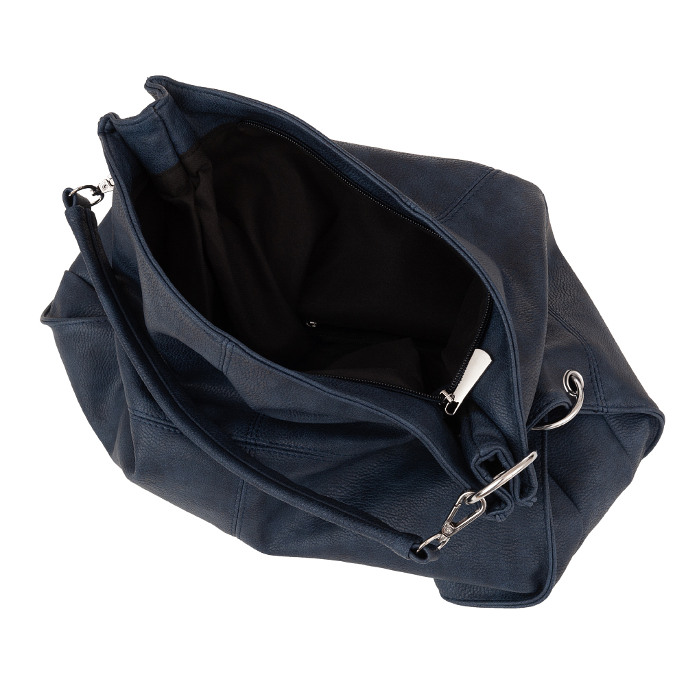 Modna torebka A4 wykonana z miękkiej skóry ekologicznej wysokiej jakości. Zamykana z góry na suwak. Torebka jednokomorowa przedzielona kieszenią na suwak na środku. Wewnątrz jedna kieszonka na zamek oraz jedna na telefon. Dodatkowo z tyłu torebki pionowa kieszonka na suwak. Wnętrze wykończone trwałą podszewką dopasowaną pod kolor skóry. Dodatkowy pasek z możliwością regulacji. Torebkę można nosić jako dużą listonoszkę doczepiając pasek do niższych obręczy.