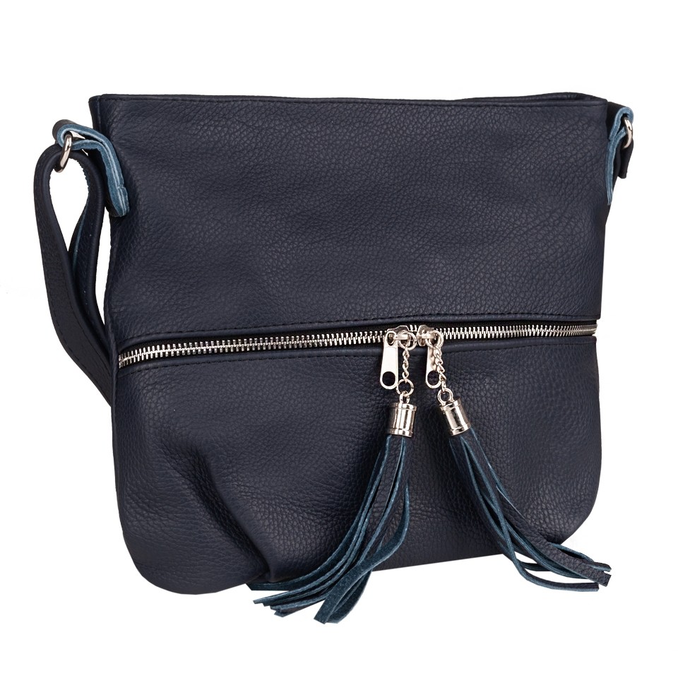 Polska skórzana torebka listonoszka wykonana z wysokogatunkowej skóry naturalnej. Zamykana od góry na zamek na całej szerokości torebki. Torebka jednokomorowa, wewnątrz jedna kieszonka na zamek + kieszonka na telefon. Wnętrze wykończone trwałą podszewką. Długi, regulowany pasek umożliwia wygodne noszenie na ramieniu lub przez ramię jako listonoszkę. Dodatkowa kieszonka z tyłu na zamek + kieszonka z przodu. Elementy wykończenia w kolorze srebrnym.