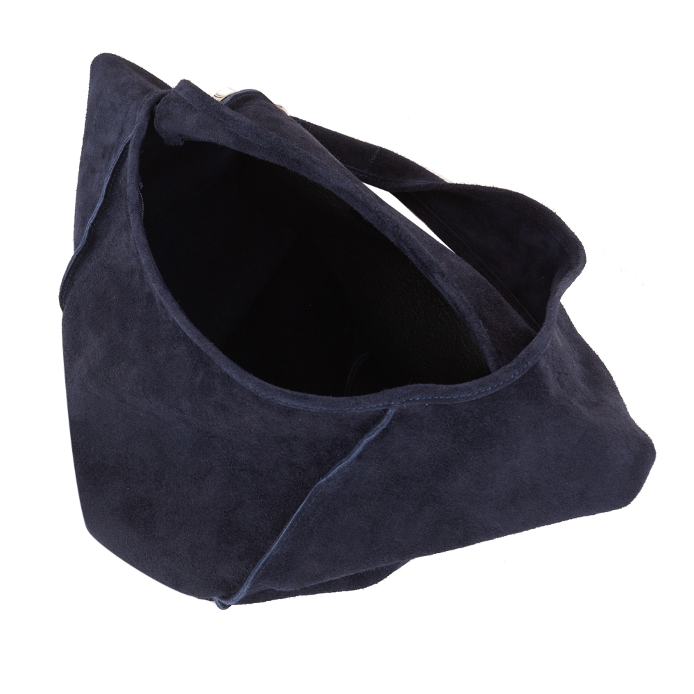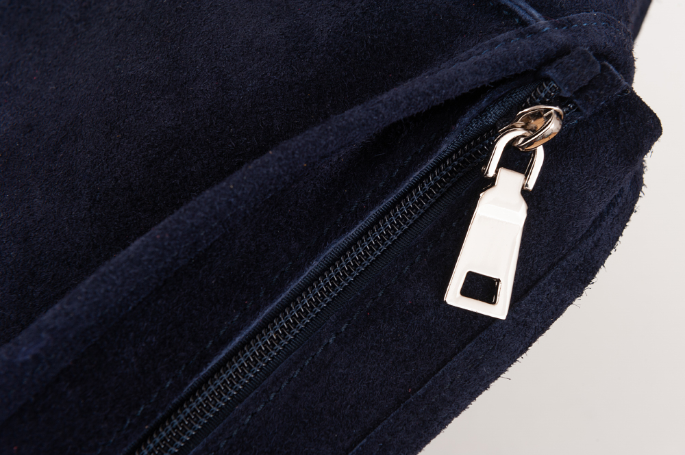 Włoska skórzana torebka worek wykonana w 100% z naturalnej skóry zamszowej najwyższej jakości. Zamsz nie farbuje. Torebka zamykana z góry na zamek. Torebka jednokomorowa przedzielona dużą kieszenią na suwak. Wewnątrz jedna kieszonka na zamek. Wnętrze wykończone gładką skórą naturalną. Metalowe elementy w kolorze srebrnym. Szeroki pasek zapewni wygodne noszenie na ramieniu.