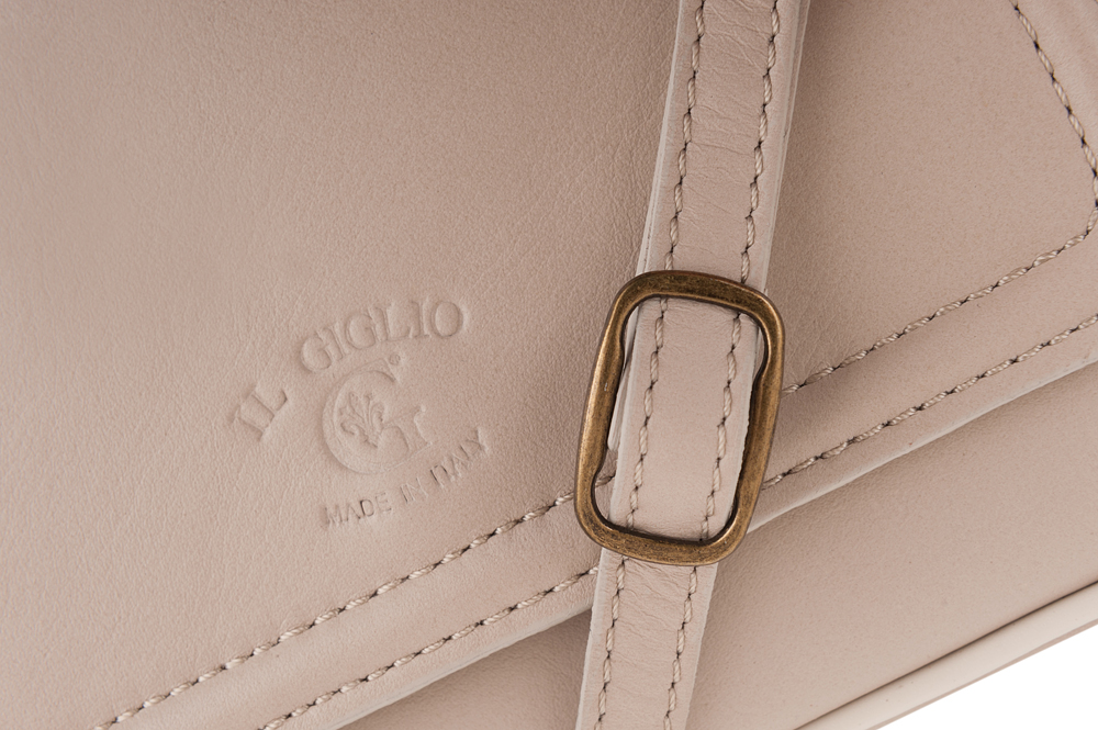 IL GIGLIO Włoska skórzana torebka / listonoszka wykonana z wysokogatunkowej naturalnej miękkiej skóry cielęcej. Zamykana od góry na klapę na magnes. Torebka jednokomorowa przedzielona na środku kieszenią na suwak, wewnątrz dodatkowo jeszcze jedna kieszonka na zamek + kieszonka z przodu pod klapą + z tyłu torebki kieszonka na suwak. Wnętrze wykończone trwałą podszewką. Długi, regulowany pasek umożliwia wygodne noszenie na ramieniu lub przez ramię. Elementy wykończenia w kolorze złotym.
