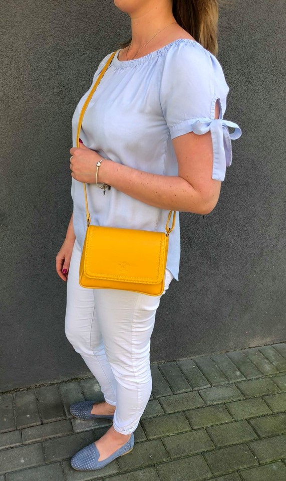 IL GIGLIO Włoska skórzana torebka / listonoszka wykonana z wysokogatunkowej naturalnej miękkiej skóry cielęcej. Zamykana od góry na klapę na magnes. Torebka jednokomorowa przedzielona na środku kieszenią na suwak, wewnątrz dodatkowo jeszcze jedna kieszonka na zamek + kieszonka z przodu pod klapą + z tyłu torebki kieszonka na suwak. Wnętrze wykończone trwałą podszewką. Długi, regulowany pasek umożliwia wygodne noszenie na ramieniu lub przez ramię. Elementy wykończenia w kolorze złotym.
