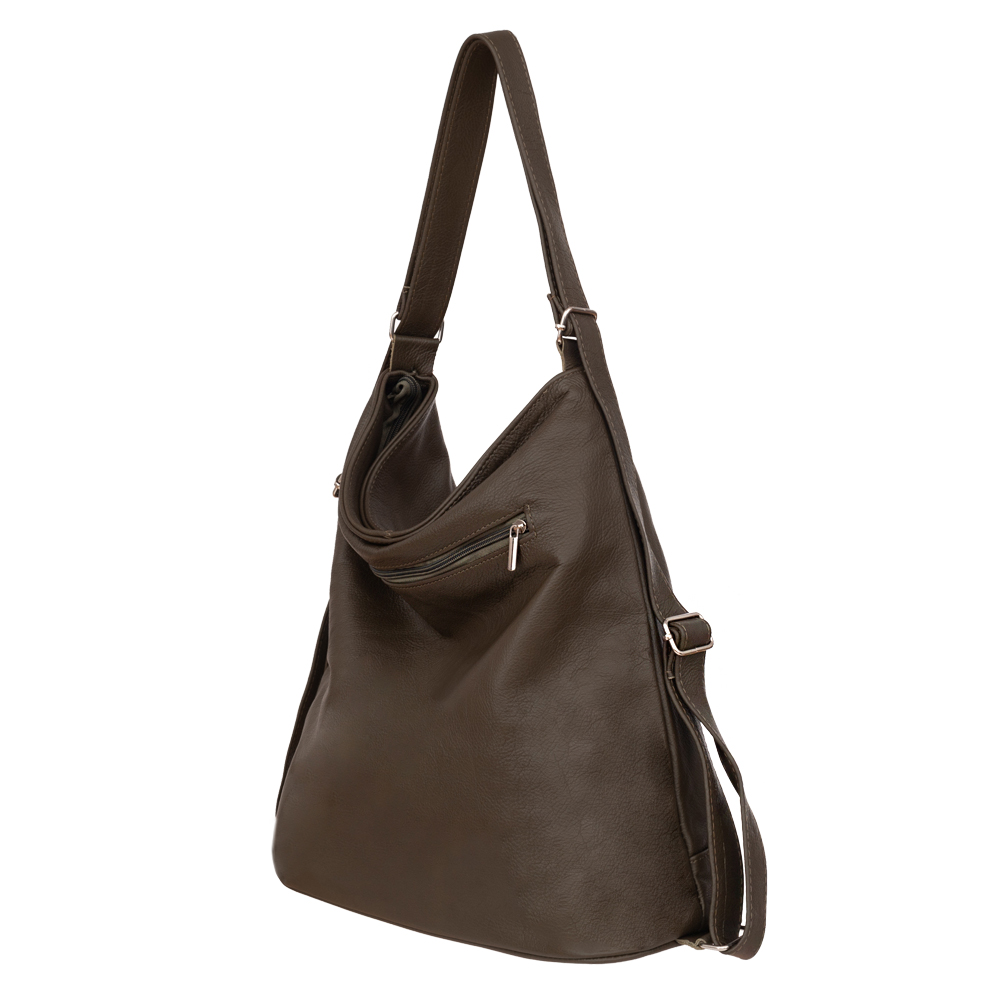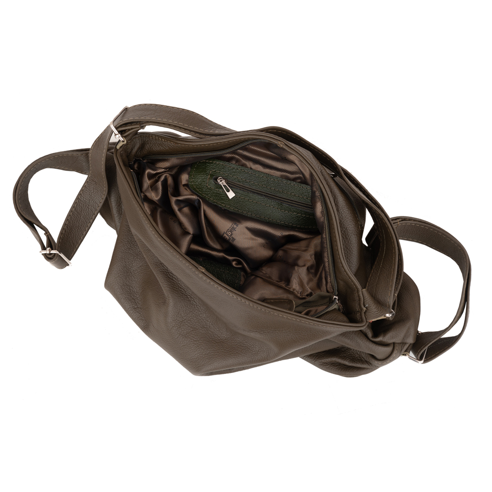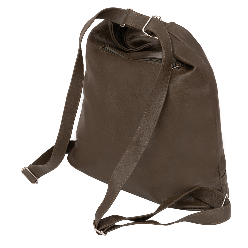 Skórzana polska modna A4 torebka 3w1 wykonana z miękkiej naturalnej skóry najwyższej jakości. Mocna i wytrzymała skóra. Torebka jednokomorowa zamykana na zamek na całej szerokości, dodatkowo w środku kieszonka na telefon + kieszeń na zamek na bocznej wewnętrznej ściance. Wnętrze wykończone mocną, materiałową podszewką. Z tyłu torebki kieszeń na zamek. Metalowe elementy wykończenia w kolorze srebrnym. Torebkę po ściągnięciu pasków można nosić jako plecak lub worek na ramieniu.