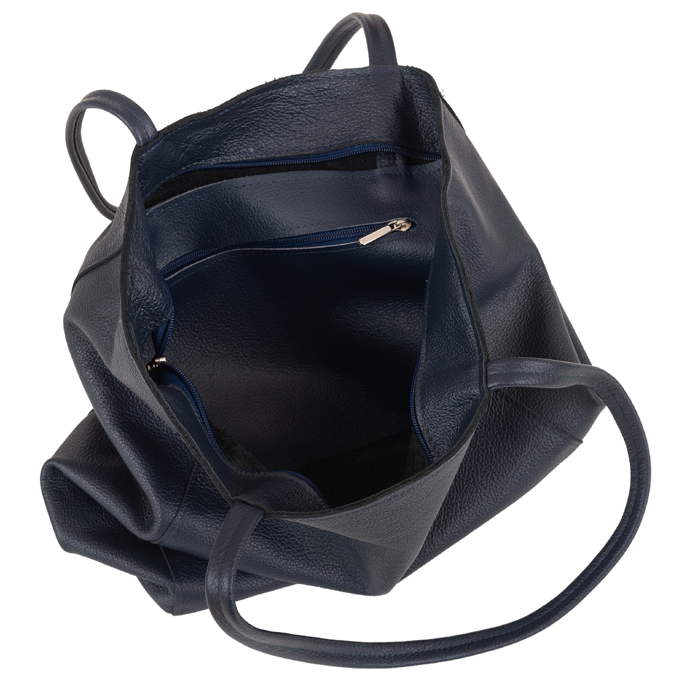 Modna skórzana torebka wykonana z naturalnej miękiej skóry naturalnej. Bardzo klasyczny i praktyczny model - bestseller ! Zamykana od góry na zamek na całej szerokości torebki. Torebka jednokomorowa, wewnątrz jedna kieszonka na zamek. Wnętrze wykończone surową skórą nadaje torebce oryginalnego wyglądu. Metalowe elementy w kolorze srebrnym. Torebkę można swobodnie nosić na ramieniu dzięki długim uszom. Dno usztywnione.