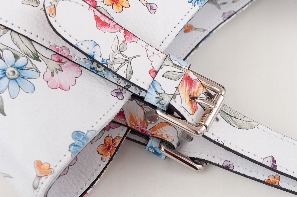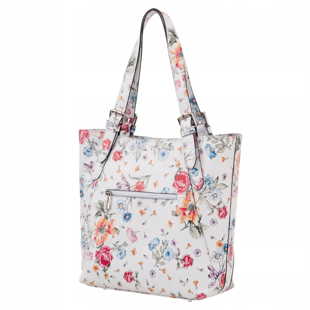 Dodatkowo z tyłu torebki kieszonka na suwak. Torebka od spodu usztywniona oraz podbita ćwiekami, co chroni ją przeciw uszkodzeniom.