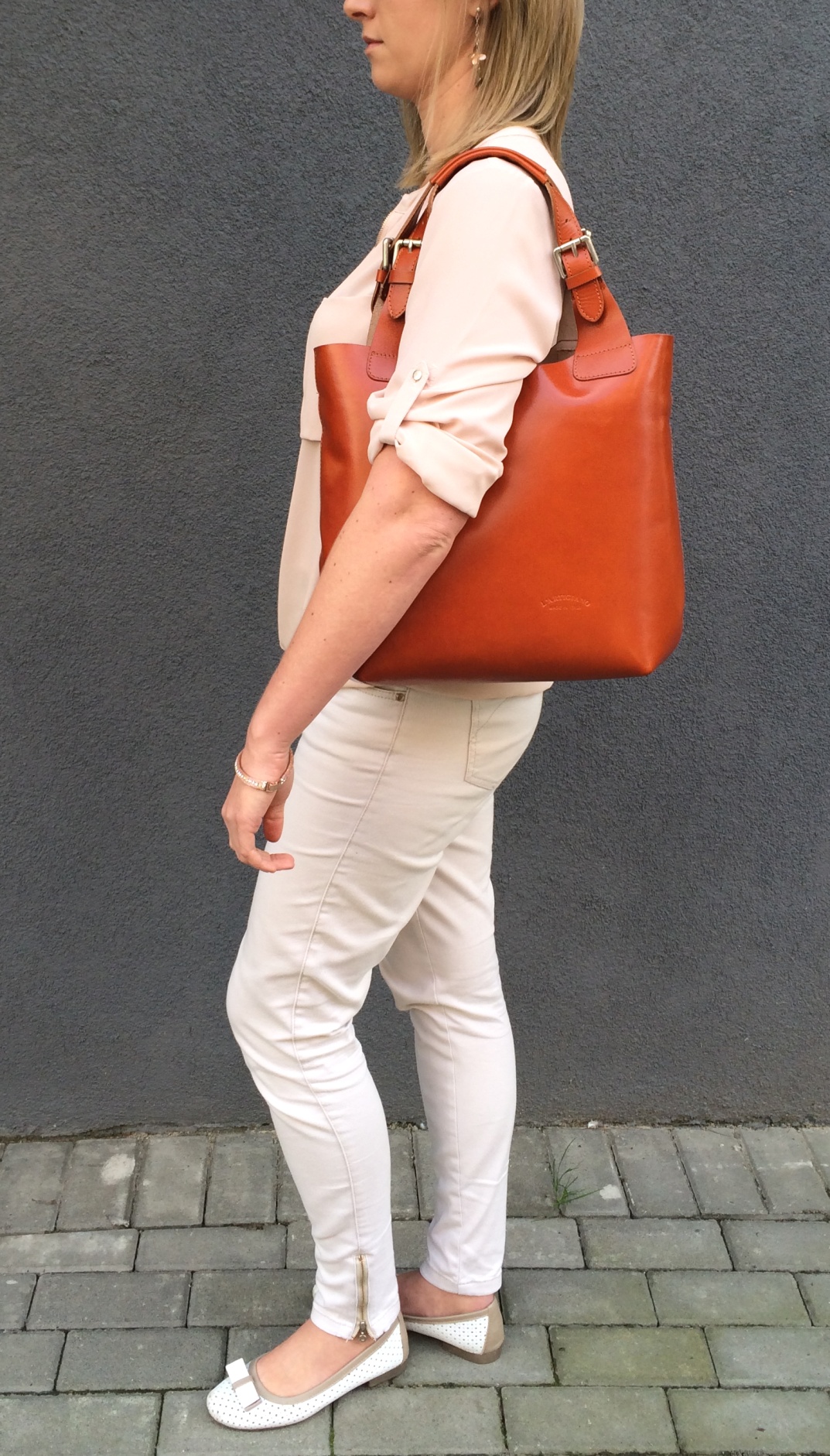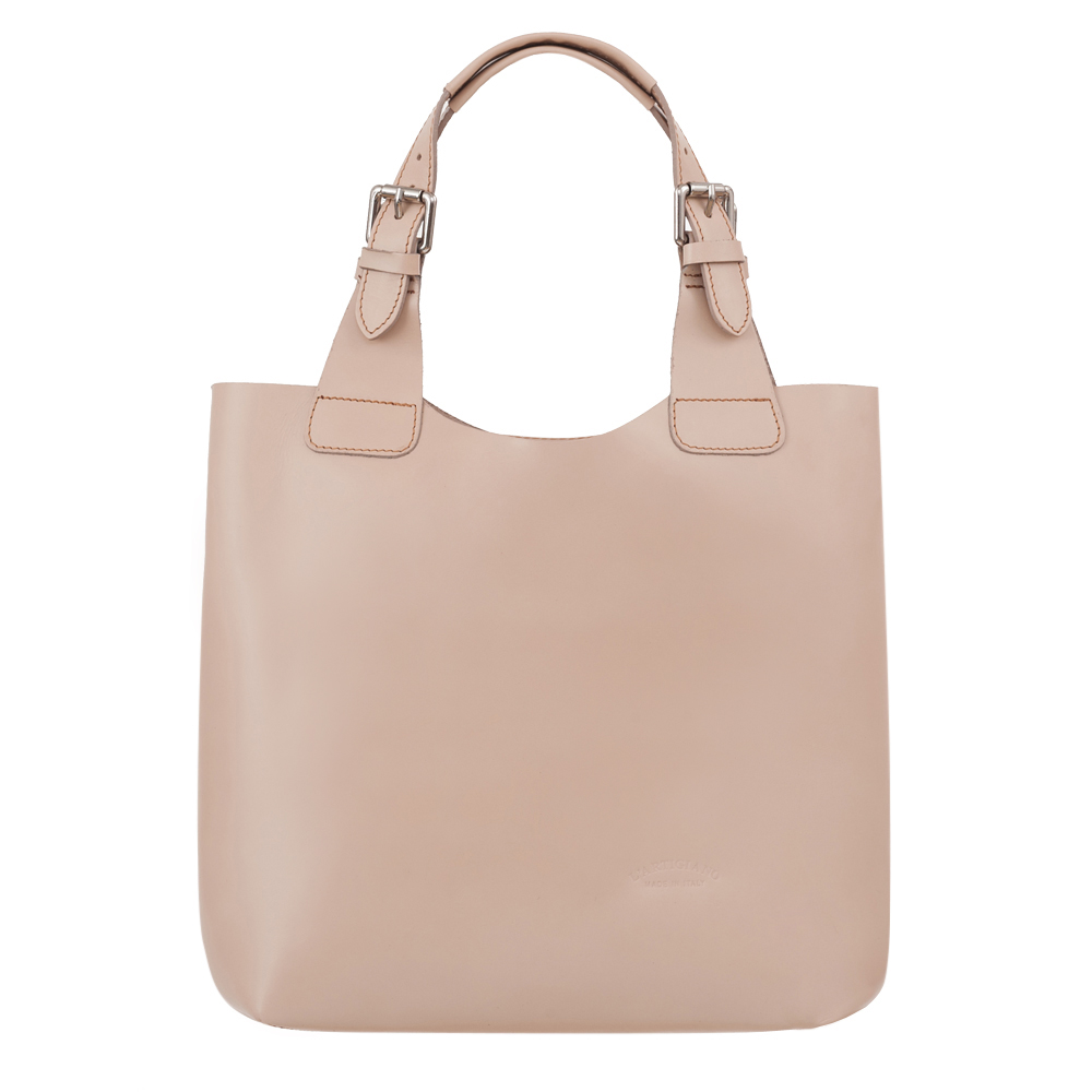 L'ARTIGIANO Włoska skórzana torebka shopper bag wykonana z wysokogatunkowej naturalnej gładkiej skóry licowej. Wygodny dostęp do środka. Torebka jednokomorowa przedzielena dużą kieszenią na suwak na całej szerokości torebki. Wkład w torebce wyciągany, dzięki czemu torebka robi się bardzo pojemna. Wewnątrz kieszonka na telefon. Torebka od środka wykończona surową skórą. Wkład wykonany z trwałej podszewki wykończonej skórą naturalną. Elementy wykończenia w kolorze srebrnym. Dodatkowy pasek o długości 100 cm.