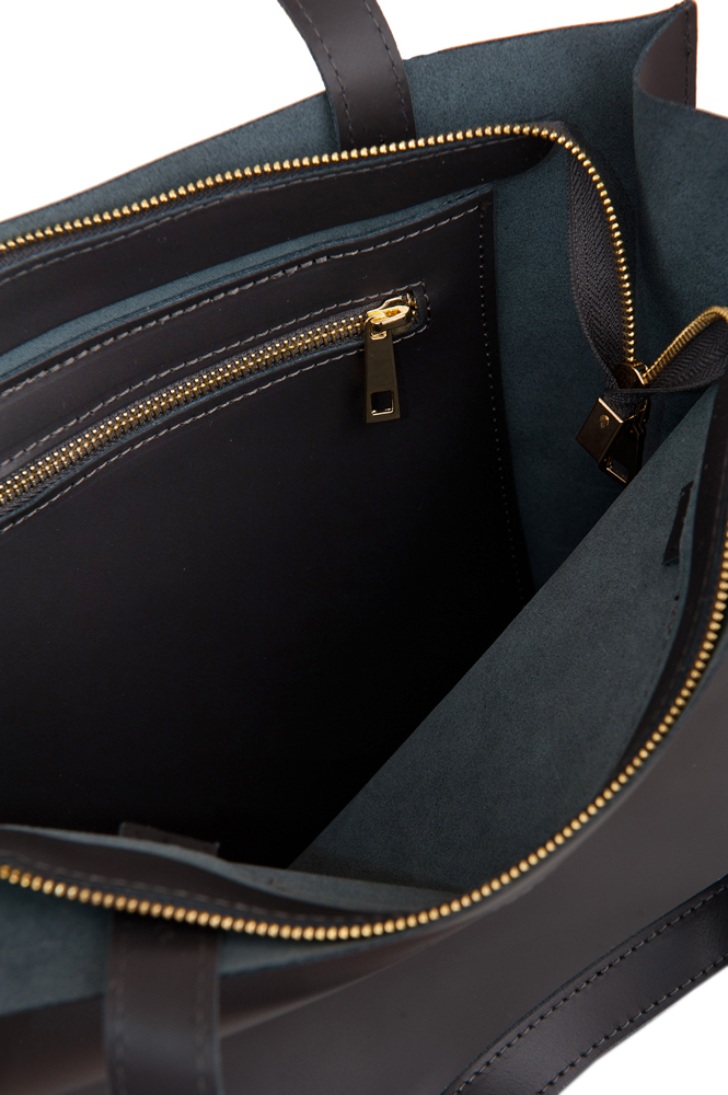 VERA PELLE włoska modna skórzana A4 torebka wykonana z wysokogatunkowej matowej naturalnej skóry. Wygodny dostęp do środka, zamykana na zamek. Torebka jednokomorowa, wewnątrz duża kieszeń na zamek. Elementy wykończenia w kolorze jasnozłotym. Dno usztywnione. Torebkę swobodnie można nosić na ramieniu.