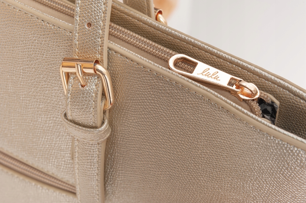 Metalowe elementy w kolorze złotym. Od spodu usztywniona. W komplecie dodatkowy pasek. Uszy regulowane na długość.