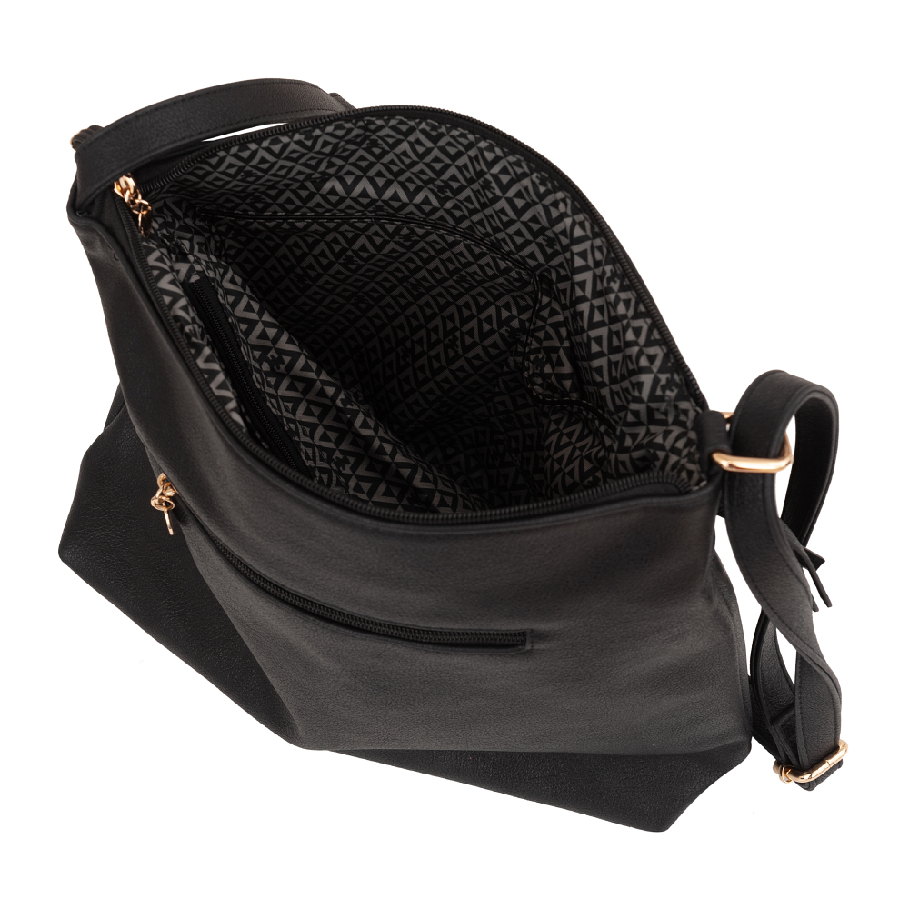 Modna torebka z misiem wykonana z wysokogatunkowej miękkiej skóry ekologicznej. Zamykana na zamek na całej szerokości. Torebka jednokomorowa przedzielona dużą kieszenią na suwak na całą szerokość torebki + w środku kieszonka na zamek oraz jedna na telefon + kieszonka na klucze. Zewnątrz z przodu 2 x kieszonka na zamek + z tyłu kieszonka na zamek. Wnętrze wykończone trwałą, materiałową podszewką kolorystycznie dopasowaną do skóry. Długi, regulowany pasek umożliwia wygodne noszenie na ramieniu lub przez ramię jak listonoszkę. Metalowe elementy w kolorze złotym.
