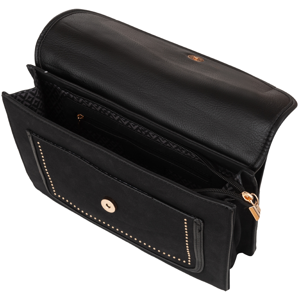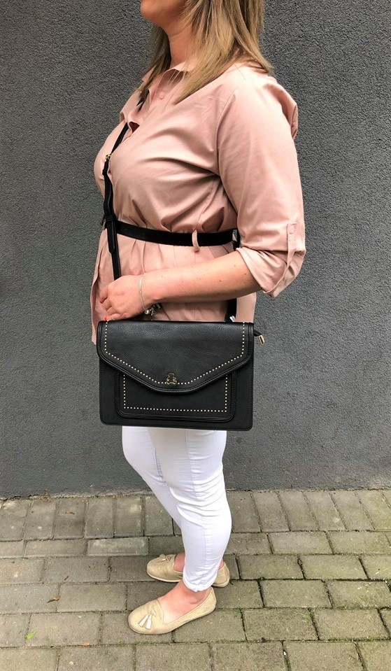 Modna torebka z misiem wykonana z wysokogatunkowej miękkiej skóry ekologicznej. Zamykana na zamek + klapa na magnes. Torebka jednokomorowa + w środku jedna kieszonka na zamek oraz jedna na telefon + kieszonka na klucze. Zewnątrz z przodu kieszonka wsuwna pod klapą + z tyłu duża kieszeń na zamek. Wnętrze wykończone trwałą, materiałową podszewką kolorystycznie dopasowaną do skóry. Długi, regulowany pasek umożliwia wygodne noszenie na ramieniu lub przez ramię jak listonoszkę. Metalowe elementy w kolorze złotym. Przy pasku dodatkowa saszetka na zatrzask.