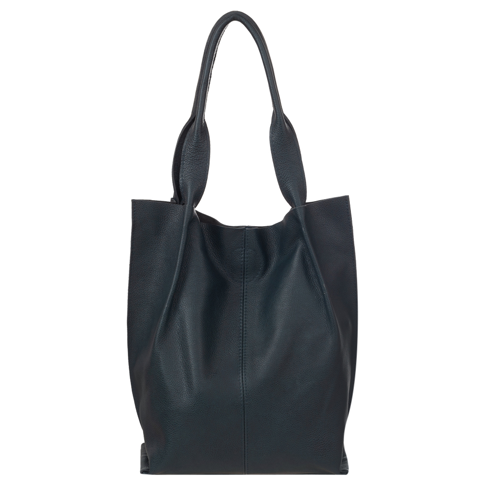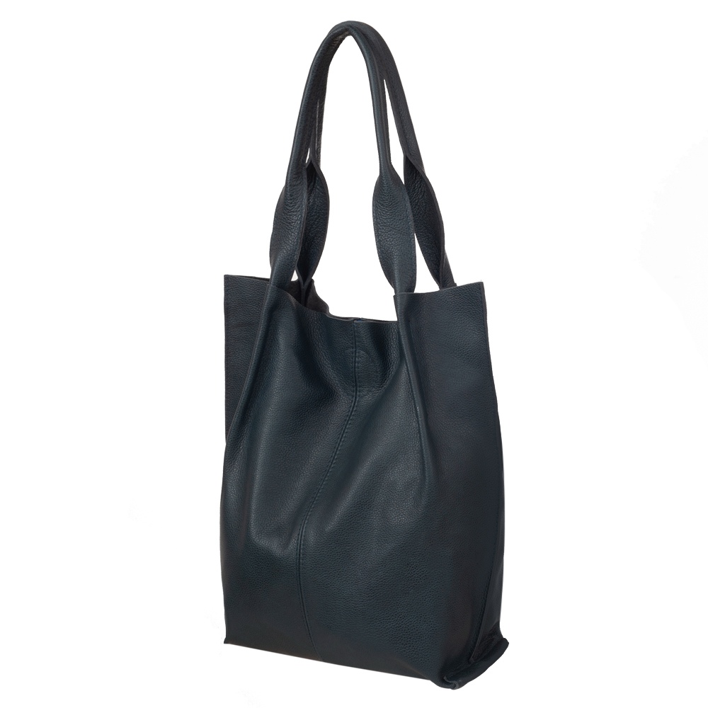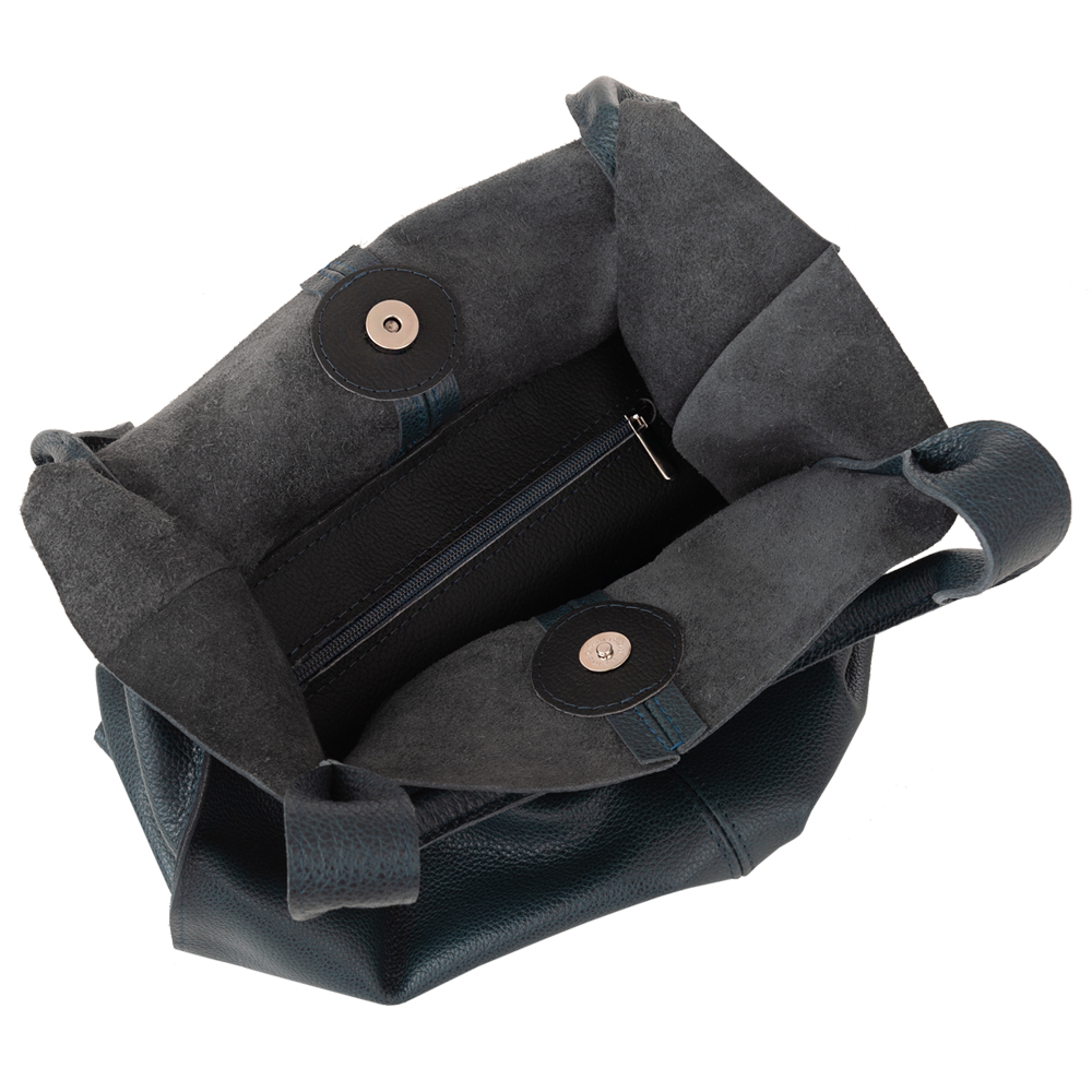 Skórzana metaliczna A4 torebka wykonana w całości z miękkiej włoskiej skóry naturalnej. Zamykana z góry na zatrzask magnetyczny. Torebka jednokomorowa. Wewnątrz jedna duża kieszonka na zamek. Wnętrze modnie wykończone surową skórą naturalną. Dno torebki delikatnie usztywnione. Torebkę swobodnie można nosić na ramieniu.