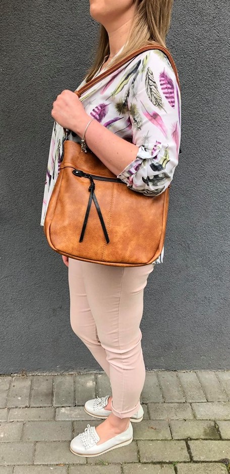 Modna, pojemna torebka listonoszka wykonana z wysokogatunkowej miękkiej skóry ekologicznej. Zamykana na zamek. Torebka jednokomorowa, w środku kieszonka na zamek, wsuwna kieszeń na drobiazgi, klucze + kieszonka na zamek. Wnętrze wykończone trwałą podszewką kolorystycznie dopasowaną do skóry. Długi, regulowany pasek umożliwia wygodne noszenie na ramieniu lub przez ramię jak listonoszkę. Dodatkowo kieszonka z przodu + pojemna kieszonka na zamek z tyłu. Maksymalna długość paska 132 cm.
