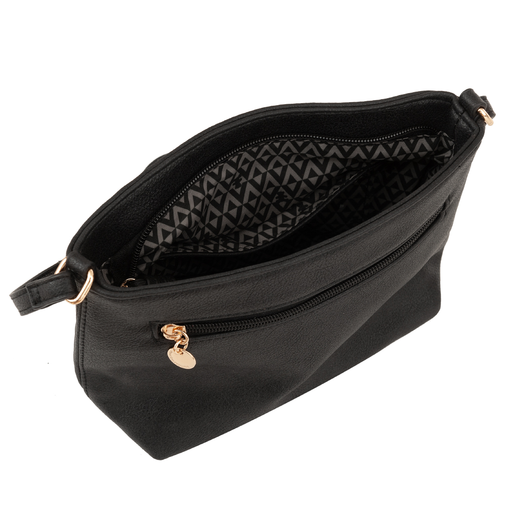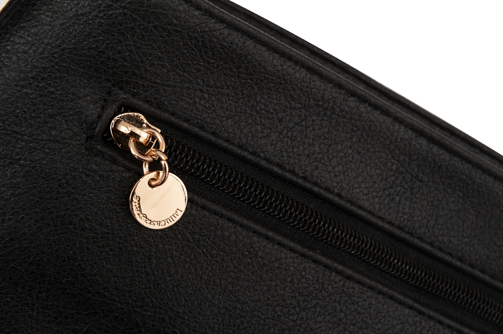 Modna torebka z misiem wykonana z wysokogatunkowej miękkiej skóry ekologicznej. Zamykana na zamek na całej szerokości, jednokomorowa + w środku kieszonka na zamek oraz jedna na telefon + kieszonka na klucze. Zewnątrz z przodu kieszonka na zamek + z tyłu kieszonka na zamek. Wnętrze wykończone trwałą, materiałową podszewką kolorystycznie dopasowaną do skóry. Długi, regulowany pasek umożliwia wygodne noszenie na ramieniu lub przez ramię jak listonoszkę. Metalowe elementy w kolorze złotym.
