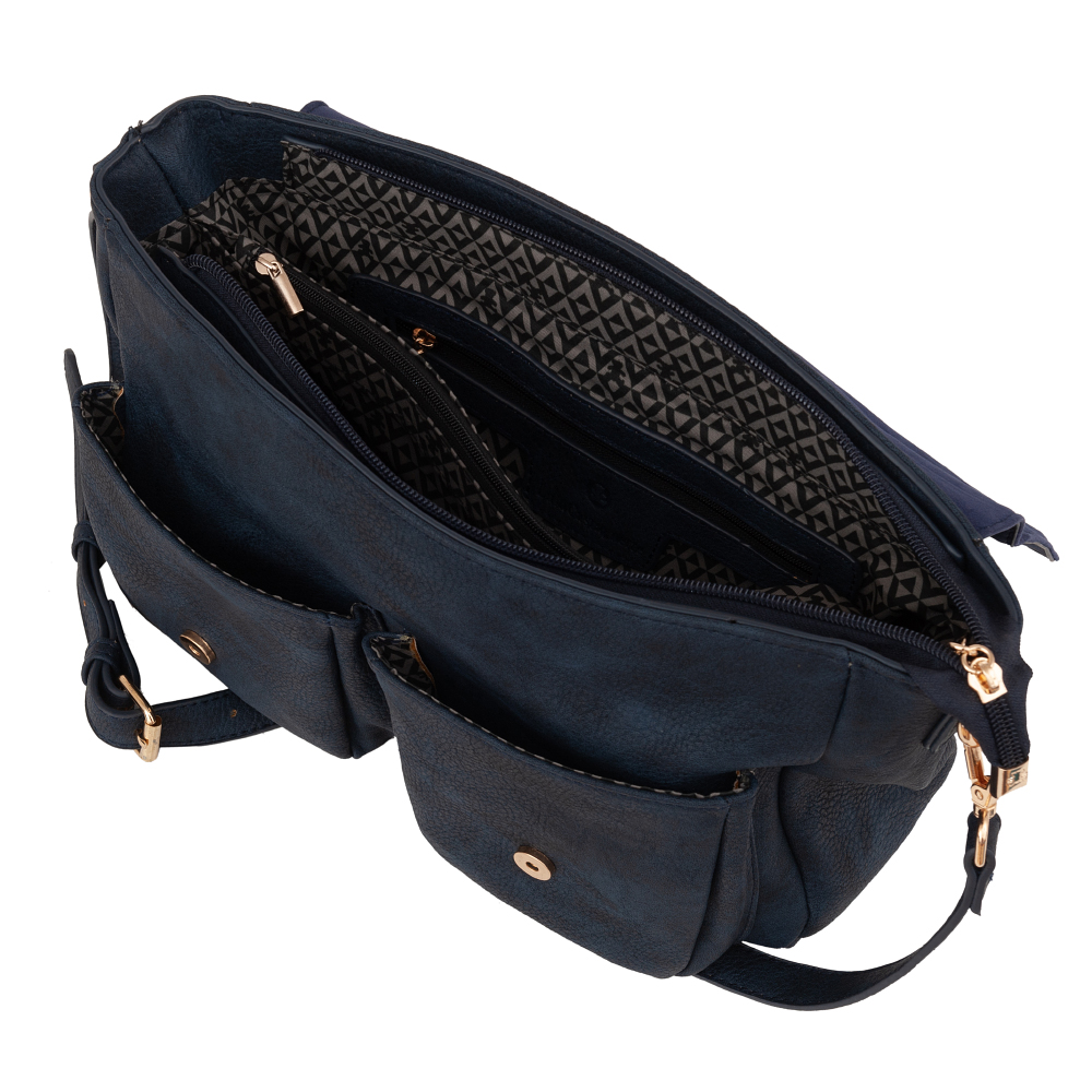 Modna torebka z misiem wykonana z wysokogatunkowej miękkiej skóry ekologicznej. Zamykana na suwak + klapa. Torebka dwukomorowa przedzielona dużą kieszenią na suwak na całą szerokość torebki + w środku 2 x kieszonka na zamek oraz jedna na telefon + kieszonka na klucze. Zewnątrz z przodu 2 x kieszonka wsuwna + z tyłu kieszonka na zamek. Wnętrze wykończone trwałą, materiałową podszewką kolorystycznie dopasowaną do skóry. Długi, regulowany pasek umożliwia wygodne noszenie na ramieniu lub przez ramię jak listonoszkę. Metalowe elementy w kolorze złotym. Z boku torebki modny pęk z frędzlem i misiem.