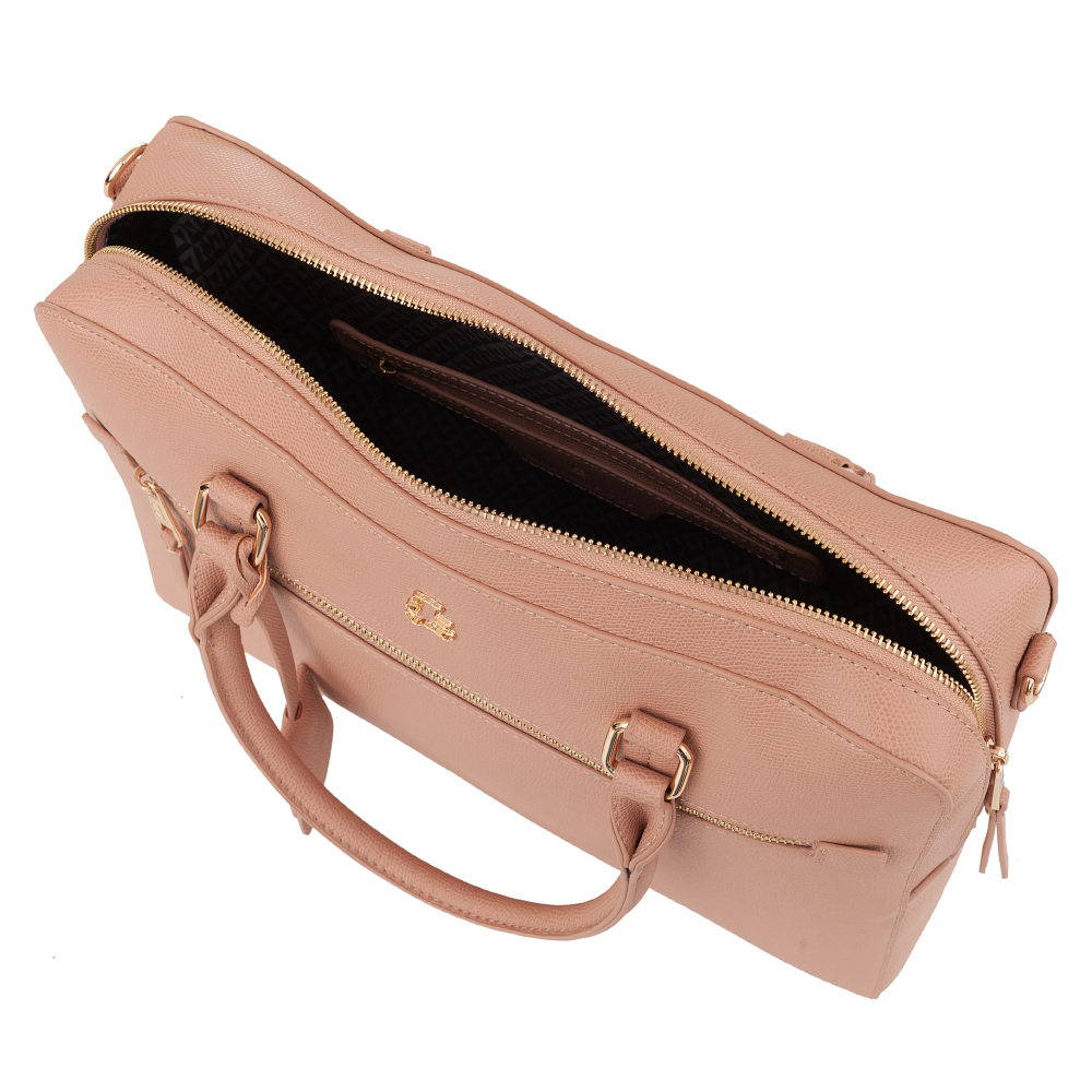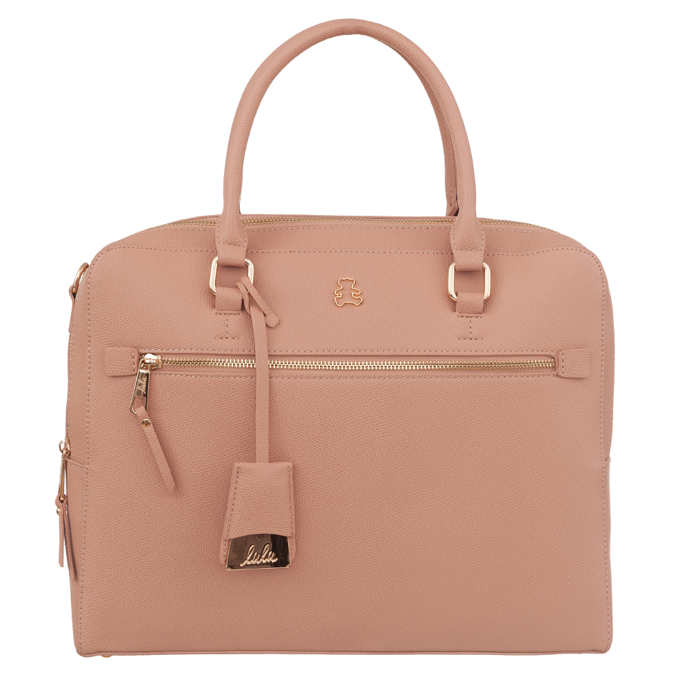 Modna torebka z misiem wykonana z wysokogatunkowej skóry ekologicznej saffiano. Zamykana na zamek na całej szerokości. Torba jednokomorowa przedzielona, w środku przegroda na laptopa + kieszonka na zamek oraz jedna na telefon + kieszonka na klucze, drobiazgi. Zewnątrz kieszonka na zamek + z tyłu kieszonka na zamek. Wnętrze wykończone trwałą, materiałową podszewką kolorystycznie dopasowaną do skóry. Długi, regulowany pasek umożliwia wygodne noszenie na ramieniu lub przez ramię jak listonoszkę. Metalowe elementy w kolorze złotym. Od spodu usztywniona i podbita metalowymi nóżkami.