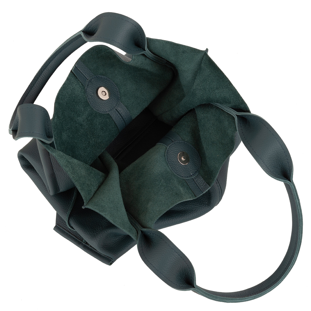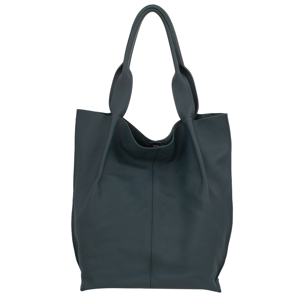 Skórzana A4 torebka wykonana w całości z miękkiej włoskiej skóry naturalnej. Zamykana z góry na zatrzask. Torebka jednokomorowa. Wewnątrz jedna duża kieszonka na zamek. Wnętrze modnie wykończone surową skórą naturalną. Dno torebki delikatnie usztywnione. Torebkę swobodnie można nosić na ramieniu.
