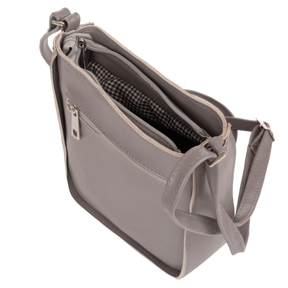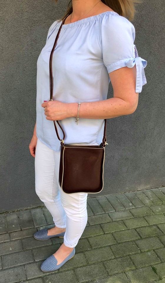 POLSKA skórzana torebka listonoszka wykonana z wysokogatunkowej naturalnej gładkiej skóry licowej. Modne obszycie na surowo skórą. Zamykana og góry na zamek. Torebka jednokomorowa, wewnątrz jedna kieszonka na zamek oraz jedna na telefon. Wnętrze wykończone trwałą, materiałową podszewką. Długi, regulowany pasek umożliwia wygodne noszenie na ramieniu lub przez ramię jako listonoszkę. Dodatkowo z tyłu praktyczna kieszonka na zamek. Elementy metalowe w kolorze srebrnym.