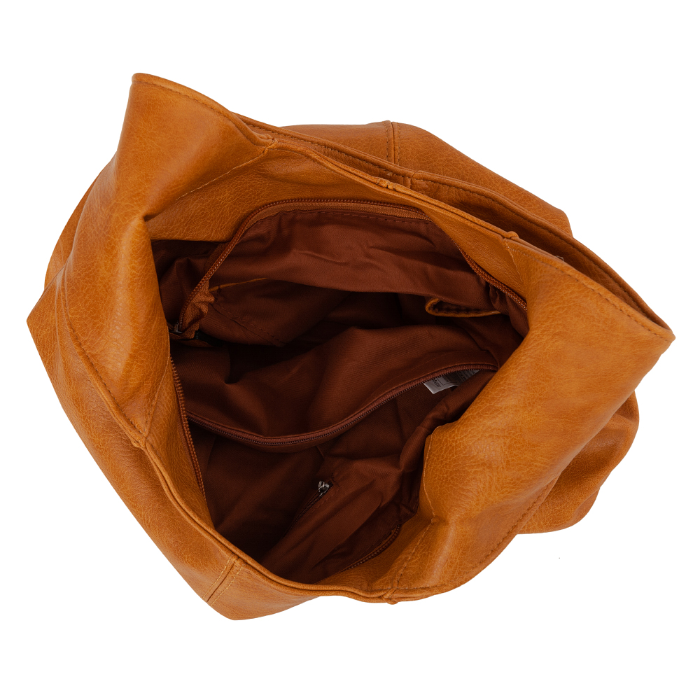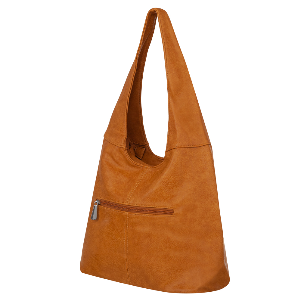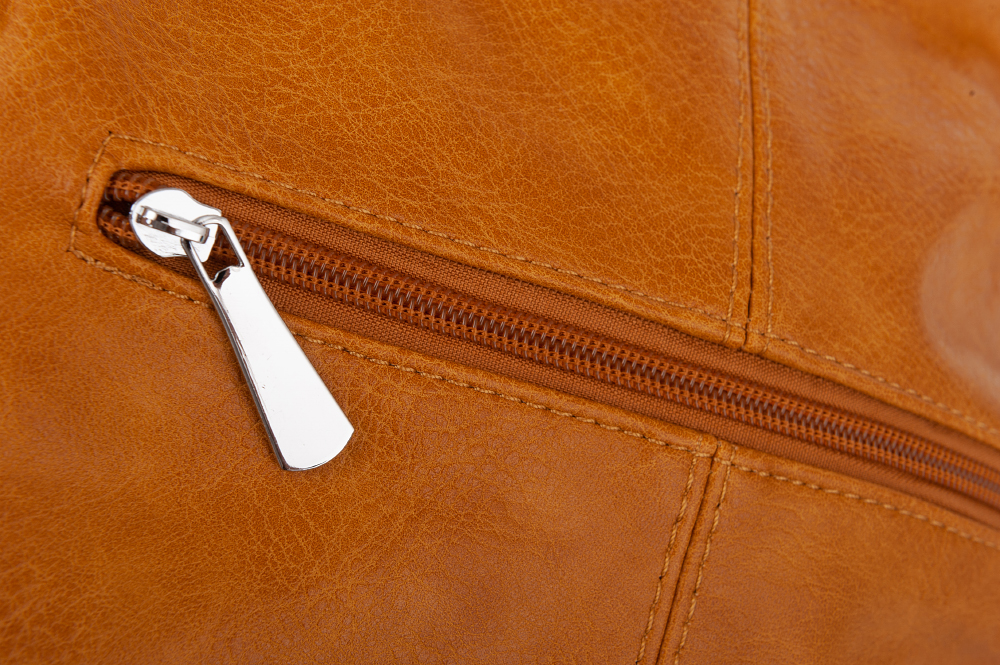 torebka worek wykonana z wysokogatunkowej miękkiej skóry ekologicznej. Zamykana z góry na suwak. Torebka dwukomorowa przedzielona na środku dużą kieszenią na suwak + wewnątrz jedna kieszonka na zamek oraz jedna na telefon. Wnętrze wykończone trwałą, bawełnianą podszewką. Szerokie ucho pozwala nosić wygodnie na ramieniu. Z tyłu torebki kieszonka na suwak. Metalowe elementy w kolorze srebrnym. Z tyłu torebki zamek.