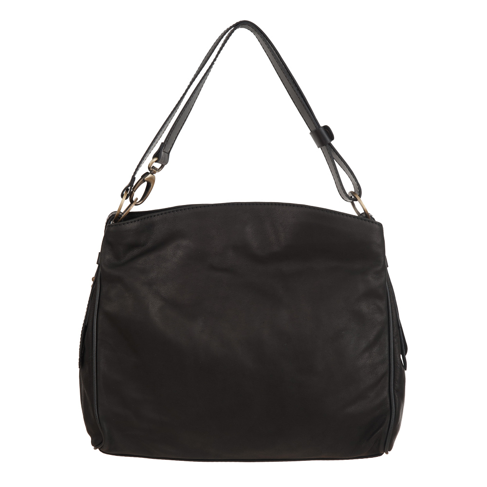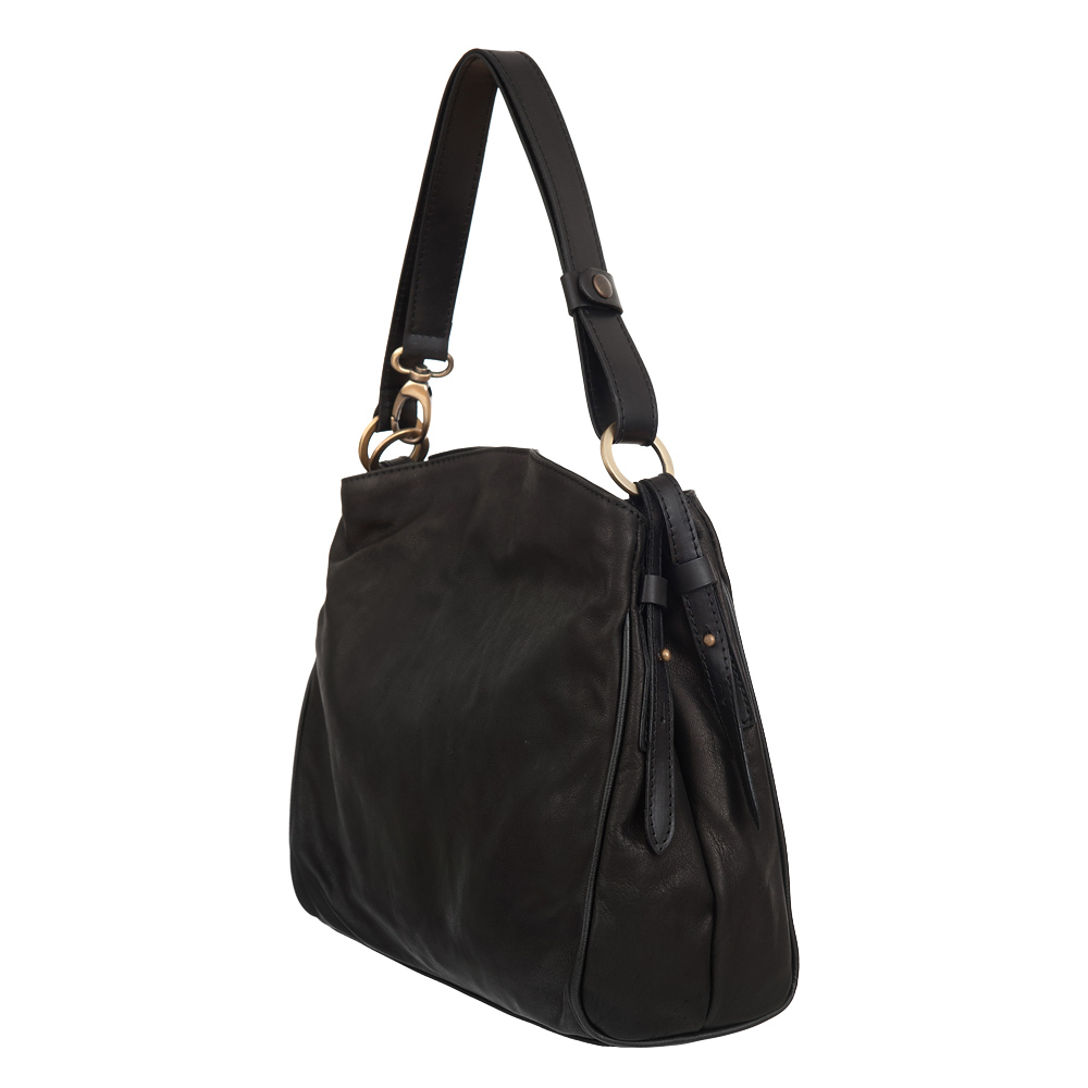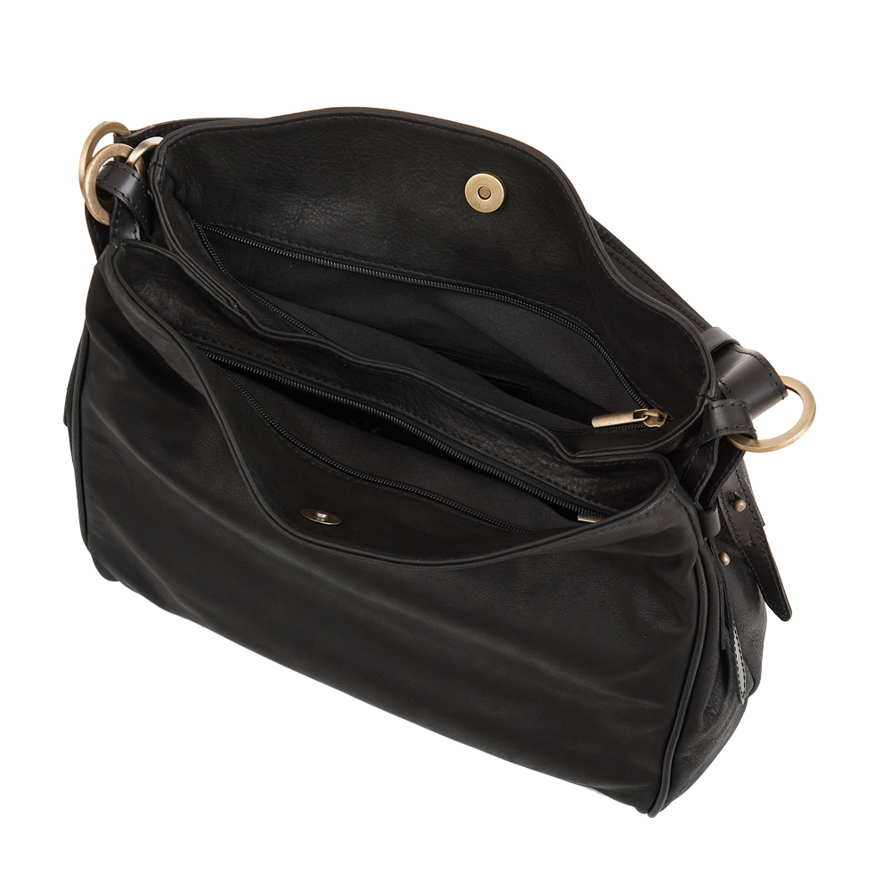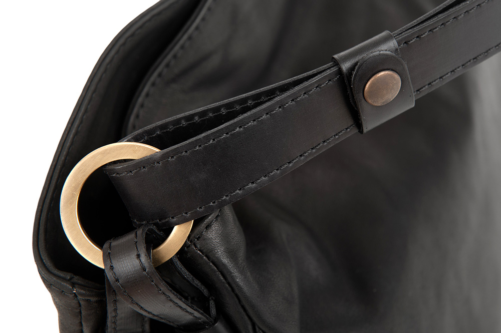 Włoska pojemna miękka skórzana torebka wykonana z wysokogatunkowej naturalnej gładkiej skóry cielęcej. Zamykana od góry na magnes + zamki na całej szerokości torebki. Torebka dwukomorowa, wewnątrz jedna kieszonka na zamek, w drugiej przegródce kieszeń na telefon. Wnętrze wykończone trwałą , materiałową podszewką. Z tyłu torebki kieszonka na zamek. Długi, regulowany pasek umożliwia wygodne noszenie na ramieniu lub przez ramię. Elementy wykończenia w kolorze metalicznozłotym. Po bokach torebki dodatkowa regulacja paska. Z tyłu torebki kieszonka na zamek.