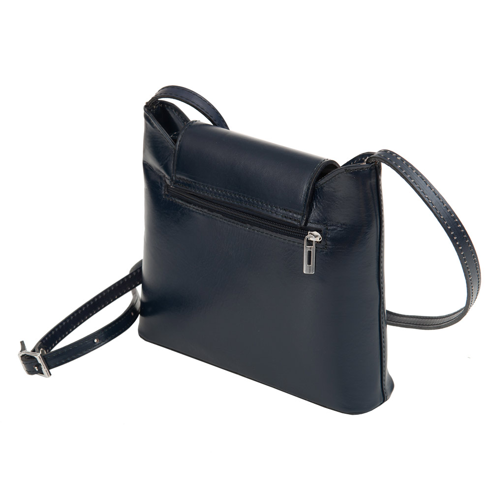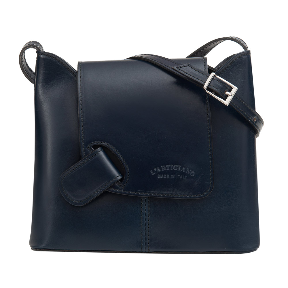 Włoska skórzana listonoszka wykonana z wysokogatunkowej naturalnej gładkiej skóry licowej firmy L'ARTIGIANO. Zamykana z góry na suwak + klapka na magnesy. Spód torebki usztywniony. Torebka jednokomorowa, wewnątrz jedna kieszonka na zamek oraz jedna na telefon. Wnętrze wykończone trwałą podszewką. Z tyłu kieszonka na suwak. Długi, regulowany pasek umożliwia wygodne noszenie na ramieniu.