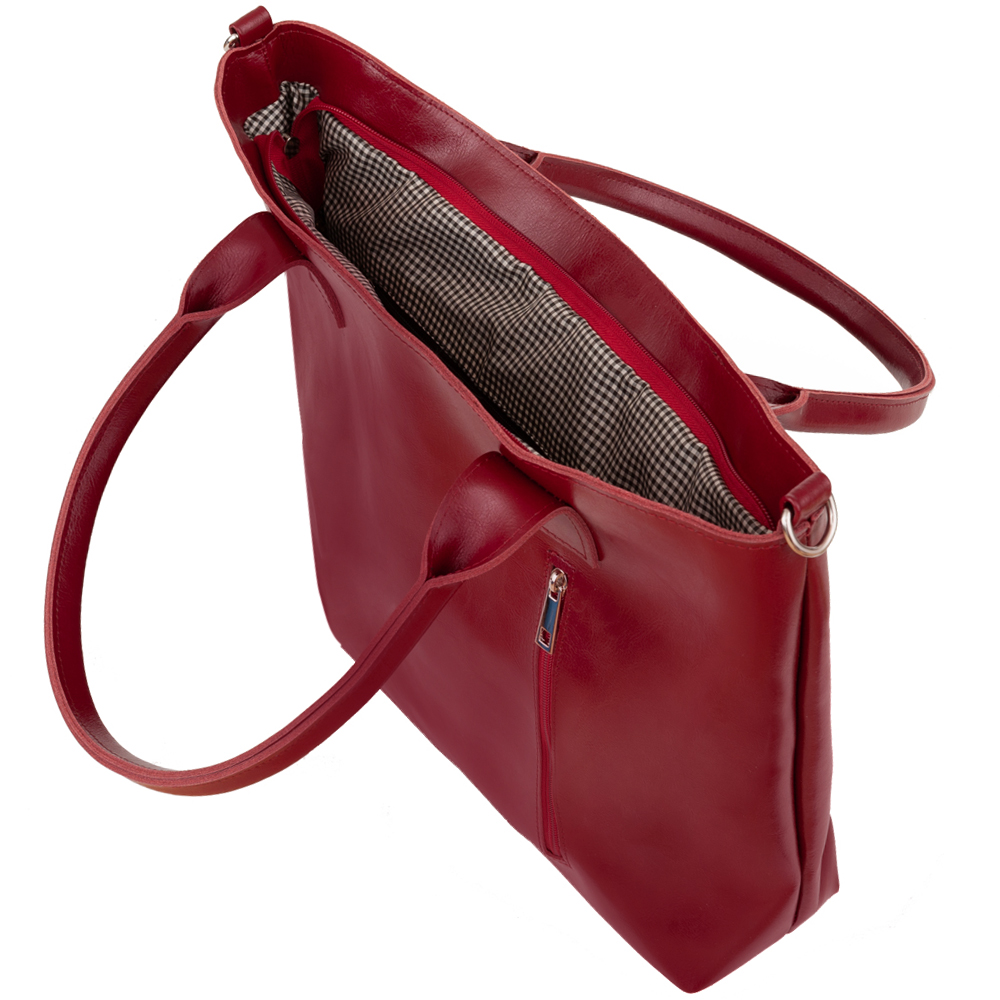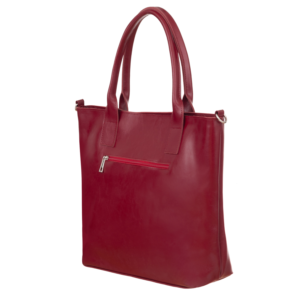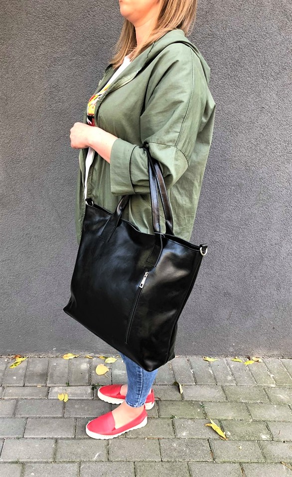Ekskluzywna polska modna, klasyczna A4 skórzana torebka wykonana z naturalnej skóry licowej najwyższej jakośći. Torebka zamykana na zamek na całej szerokości. Torebka jednokomorowa, dodatkowo w środku kieszonka na telefon + kieszeń na zamek na bocznej wewnątrzenej ściance. Wnętrze wykończone mocną, materiałową podszewką. Z tyłu i z przodu torebki kieszeń na zamek. Metalowe elementy wykończenia w kolorze srebrnym. Torebka podbita metalowymi nóżkami. W komplecie dodatkowy regulowany długi pasek na ramię.