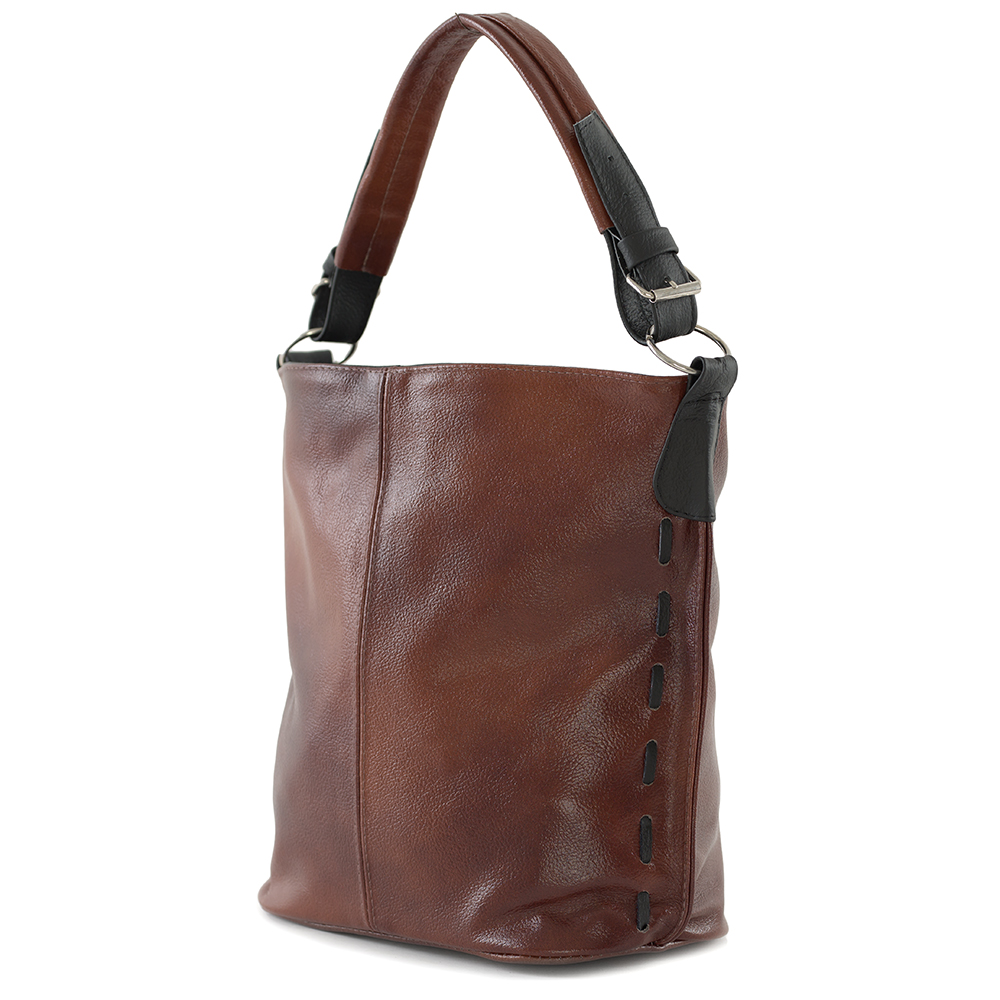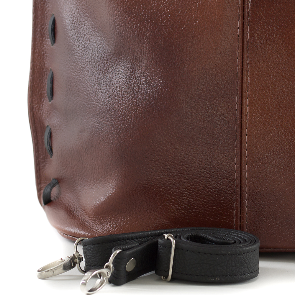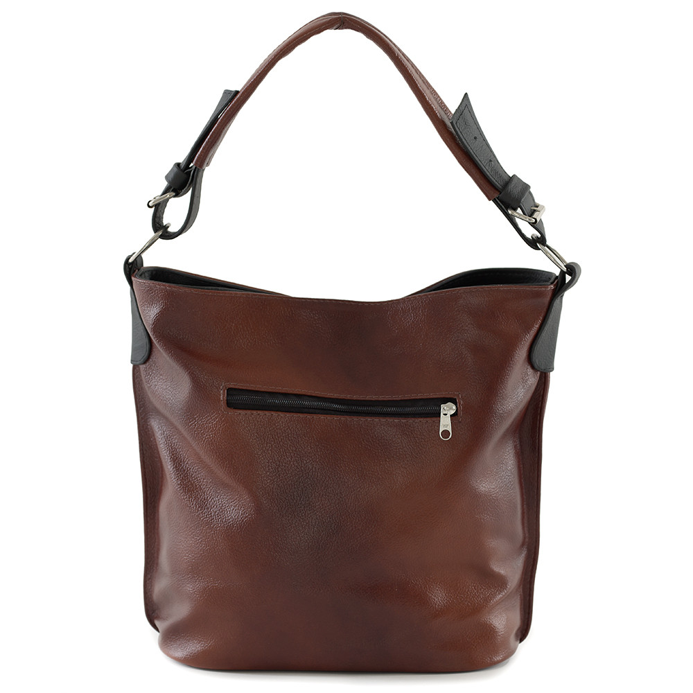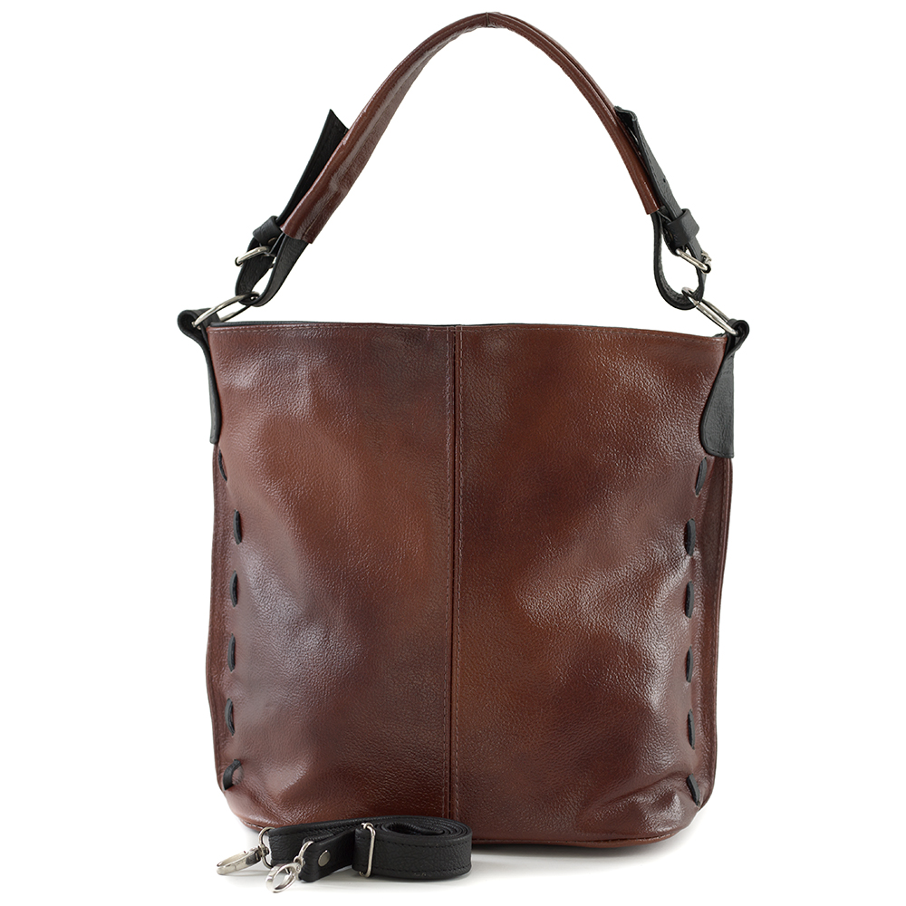 Polska skórzana torebka / worek wykonana w 100% ze skóry naturalnej. Zamykana z góry na suwak. Torebka jednokomorowa. Wewnątrz jedna kieszonka na zamek oraz jedna na telefon. Dodatkowo z tyłu kieszonka na suwak. Wnętrze wykończone trwałą podszewką. Dodatkowy pasek z możliwością regulacji długości od 52 cm do 104 cm. Ucho w torebce regulowane na długość.