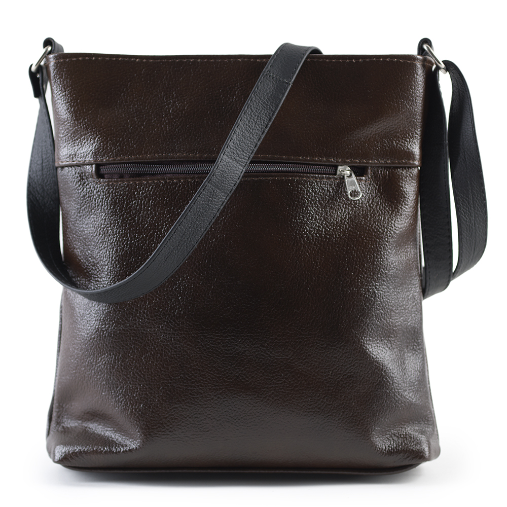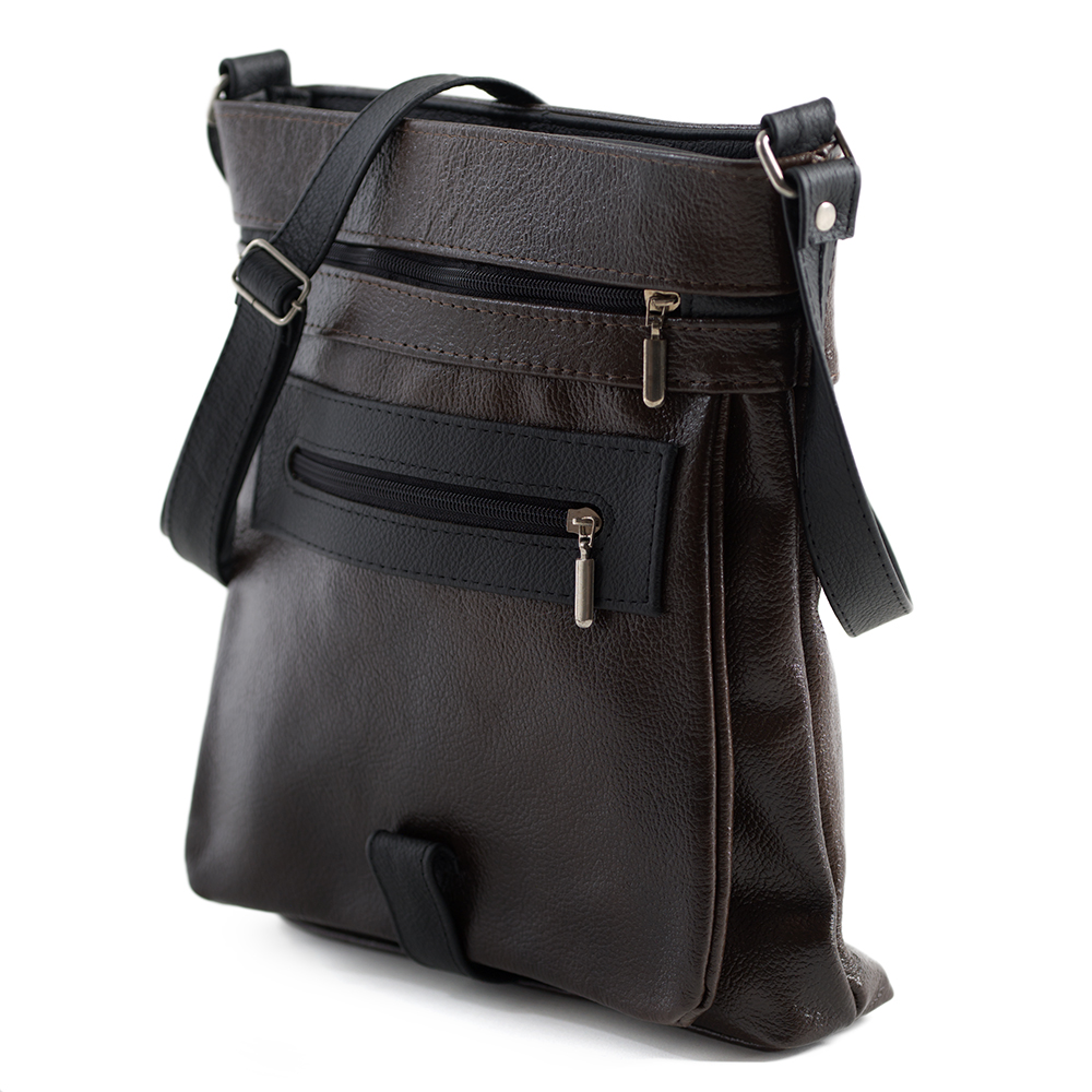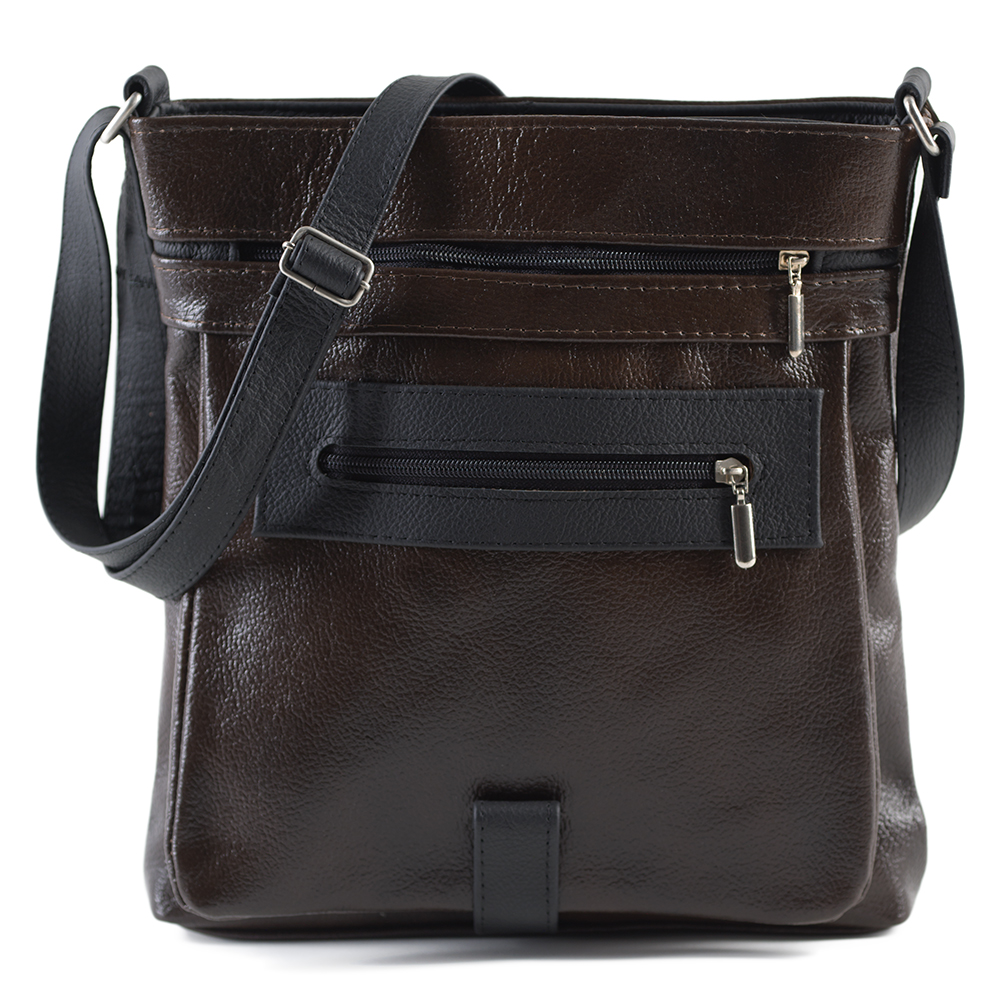 Polska skórzana listonoszka wykonana w 100% ze skóry naturalnej licowej. Zamykana z góry na suwak. Torebka jednokomorowa. Wewnątrz jedna kieszonka na zamek oraz jedna na telefon. Dodatkowo z tyłu kieszonka na suwak + z przodu dwie kieszonki na suwak. Wnętrze wykończone trwałą, ciemną podszewką. Pasek w torebce regulowany na długość. Miękki szeroki pasek umożliwia wygodne noszenie torebki.