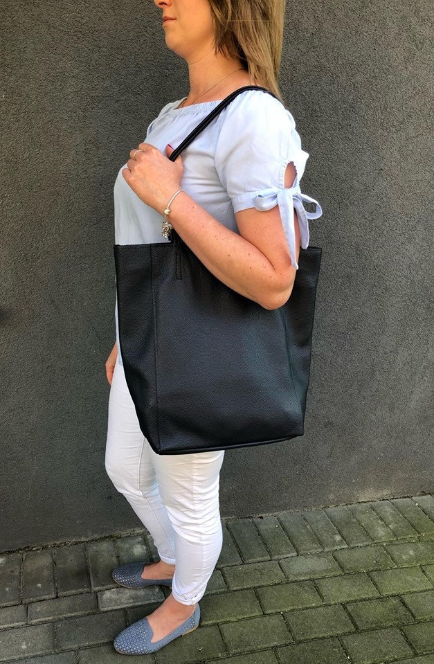 Modna skórzana torebka wykonana z naturalnej miękiej skóry naturalnej. Bardzo klasyczny i praktyczny model - bestseller ! Zamykana od góry na zamek na całej szerokości torebki. Torebka jednokomorowa, wewnątrz jedna kieszonka na zamek. Wnętrze wykończone surową skórą nadaje torebce oryginalnego wyglądu. Metalowe elementy w kolorze srebrnym. Torebkę można swobodnie nosić na ramieniu dzięki długim uszom. Dno usztywnione.
