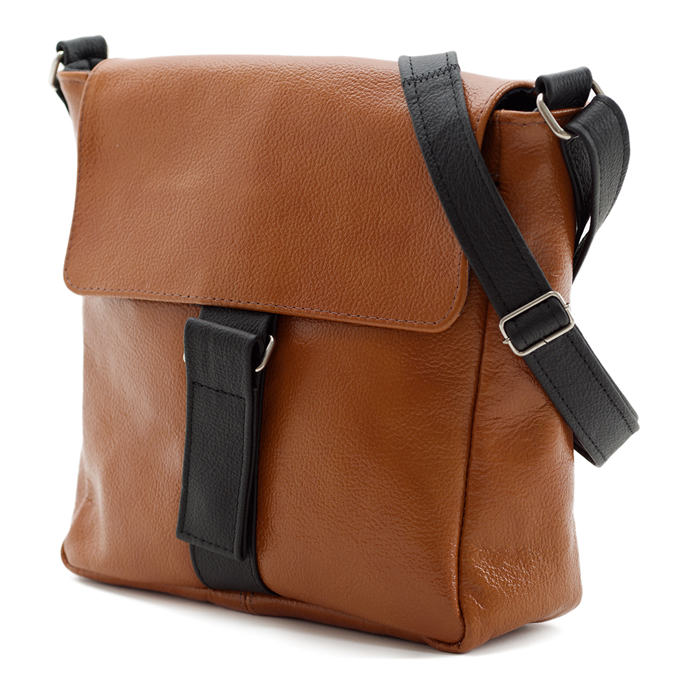 Polska skórzana listonoszka wykonana w 100% ze skóry naturalnej. Zamykana z góry na klapę z magnesem + suwak. Torebka jednokomorowa. Wewnątrz jedna kieszonka na zamek oraz jedna na telefon. Dodatkowo z tyłu kieszonka na suwak + z przodu pod klapką. Wnętrze wykończone trwałą podszewką. Pasek w torebce regulowany na długość. Miękki szeroki pasek umożliwia wygodne noszenie torebki.