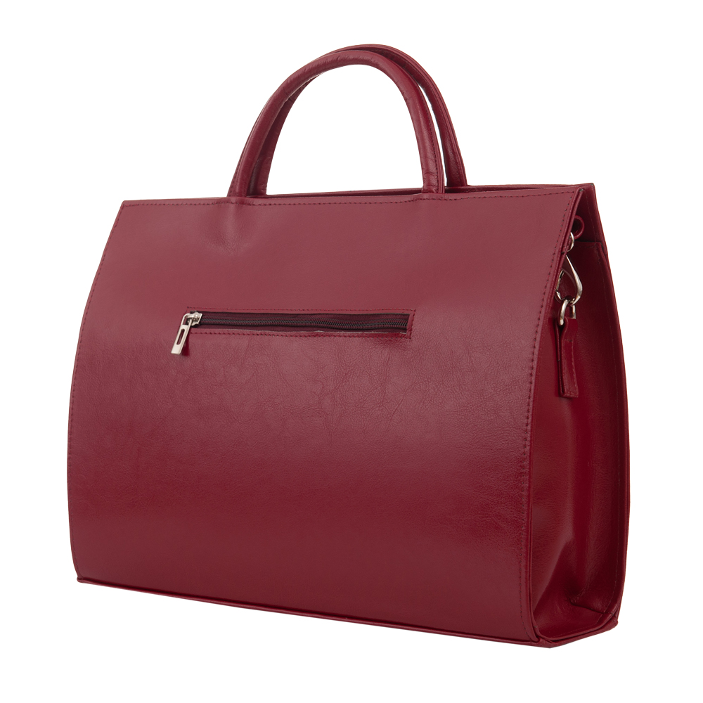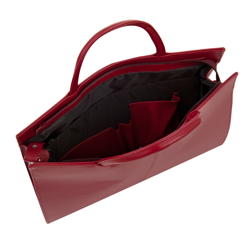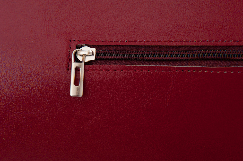 Polska klasyczna skórzana teczka / aktówka wykonana z wysokogatunkowej naturalnej gładkiej skóry licowej. Zamykana z góry na suwak. Torebka dwukomorowa przedzielona dużą kieszenią na suwak na całą szerokość teczki + wewnątrz jedna kieszonka na zamek, jedna na telefon + długopisy i wizytówki. Wnętrze wykończone trwałą czarną podszewką. Dodatkowo z tyłu teczki kieszonka na suwak. Od spodu usztywniona. Elementy wykończenia w kolorze srebrnym. Dodatkowy pasek o długości do max. 137 cm.