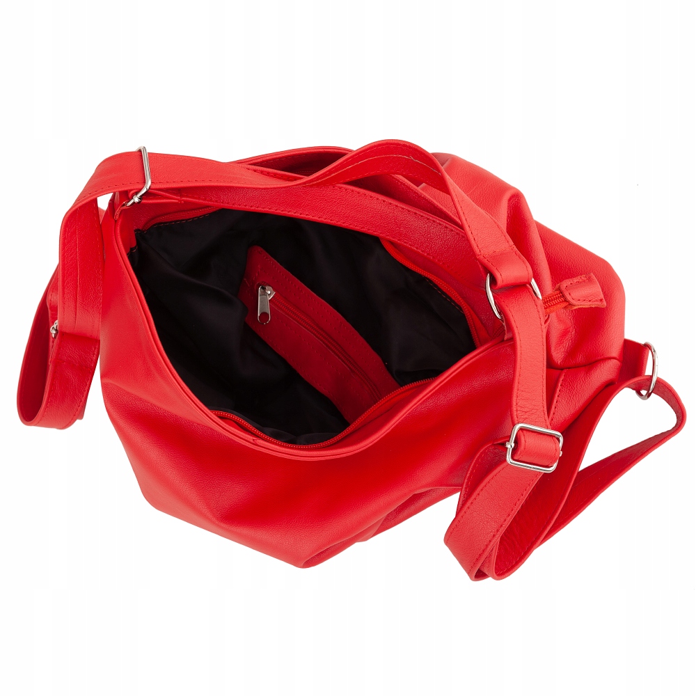 Skórzana polska modna A4 torebka 3w1 wykonana z miękkiej naturalnej skóry najwyższej jakości. Mocna i wytrzymała skóra. Torebka jednokomorowa zamykana na zamek na całej szerokości, dodatkowo w środku kieszonka na telefon + kieszeń na zamek na bocznej wewnętrznej ściance. Wnętrze wykończone mocną, materiałową podszewką. Z tyłu torebki kieszeń na zamek. Metalowe elementy wykończenia w kolorze srebrnym. Torebkę po ściągnięciu pasków można nosić jako plecak lub worek na ramieniu.