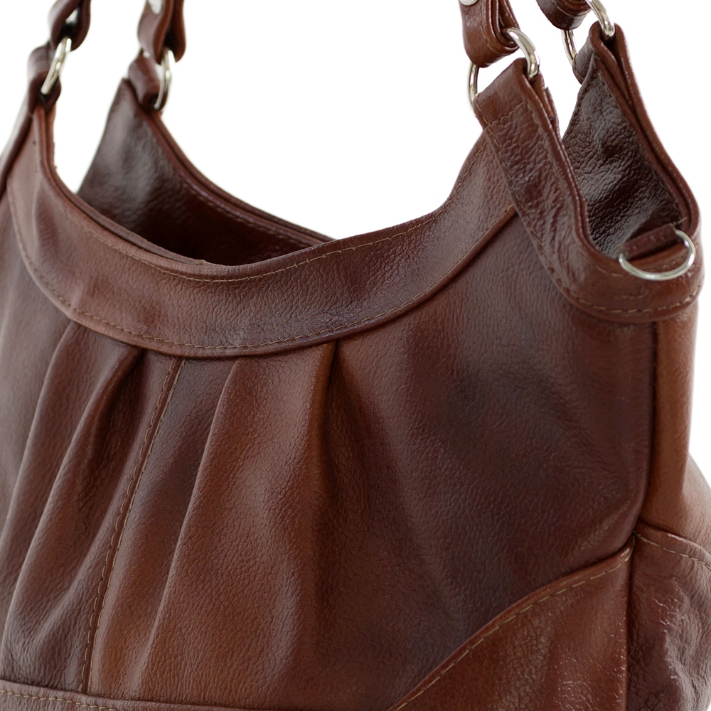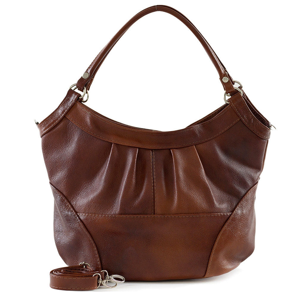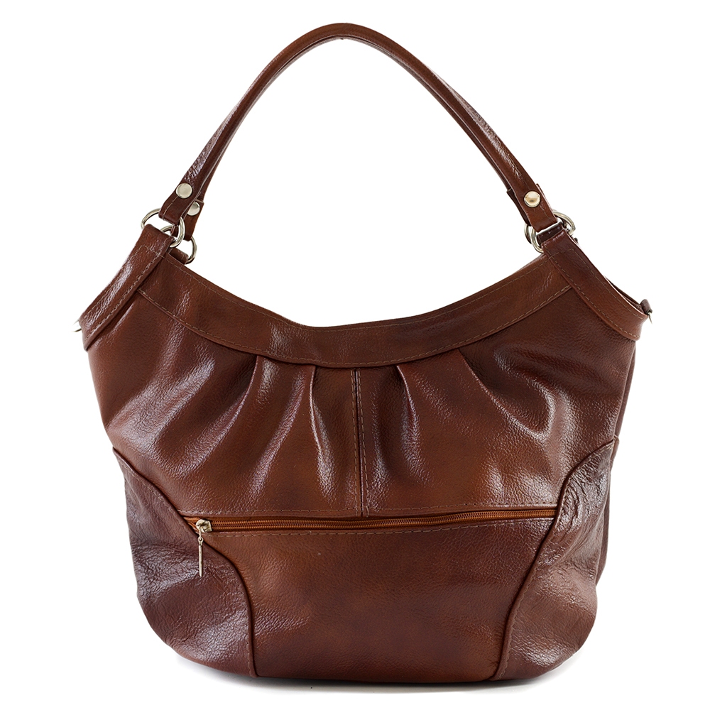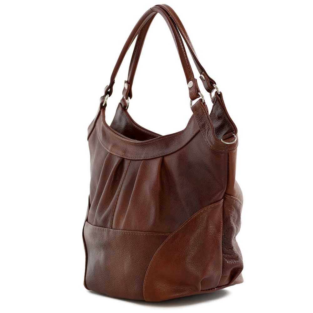 Polska skórzana torebka wykonana w 100% ze skóry naturalnej licowej. Skóra delikatnie cieniowana. Zamykana z góry na suwak. Torebka jednokomorowa przedzielona dużą kieszenią na suwak. Wewnątrz jedna kieszonka na zamek oraz jedna na telefon. Dodatkowo z tyłu kieszonka na suwak. Wnętrze wykończone trwałą, czarną podszewką. Dodatkowy pasek z możliwością regulacji długości od 45 cm do 90 cm.