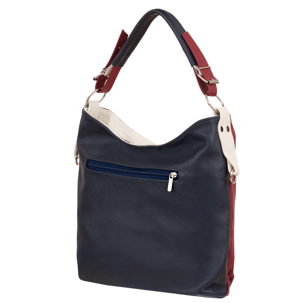 Dodatkowo z tyłu kieszonka na suwak + dwie kieszonki z przodu. Wnętrze wykończone trwałą podszewką. Dodatkowy pasek z możliwością regulacji długości od 60 cm do 121 cm. Ucho w torebce regulowane na długość od 51 cm do 65 cm. Metalowe elementy w kolorze srebrnym. Dno torebki usztywnione.