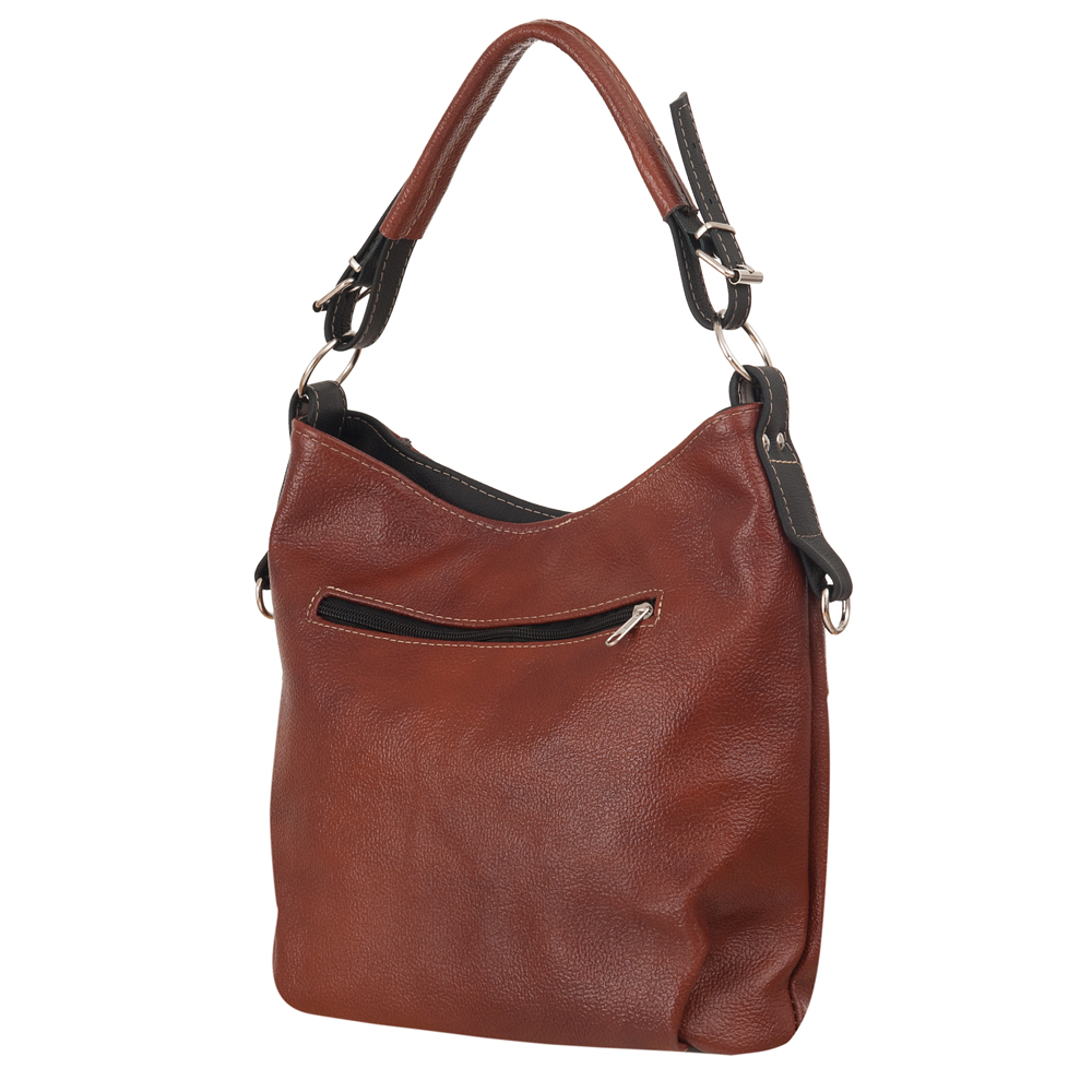 Dodatkowo z tyłu kieszonka na suwak + dwie kieszonki z przodu. Wnętrze wykończone trwałą podszewką. Dodatkowy pasek z możliwością regulacji długości od 60 cm do 121 cm. Ucho w torebce regulowane na długość od 51 cm do 65 cm. Metalowe elementy w kolorze srebrnym. Dno torebki usztywnione.
