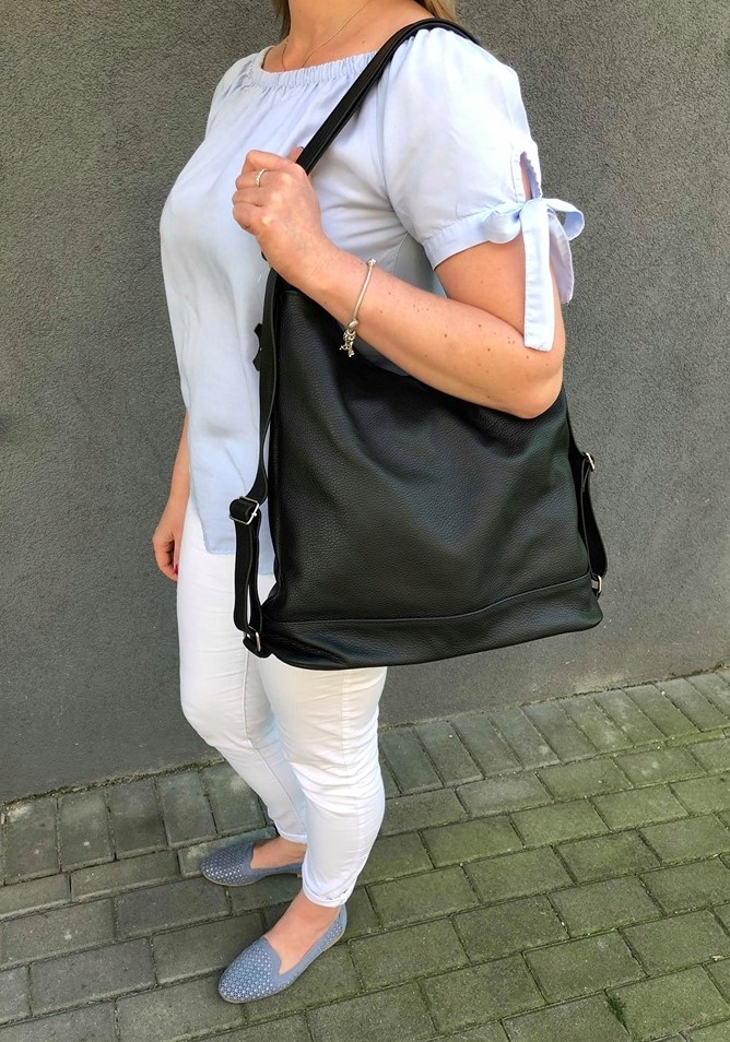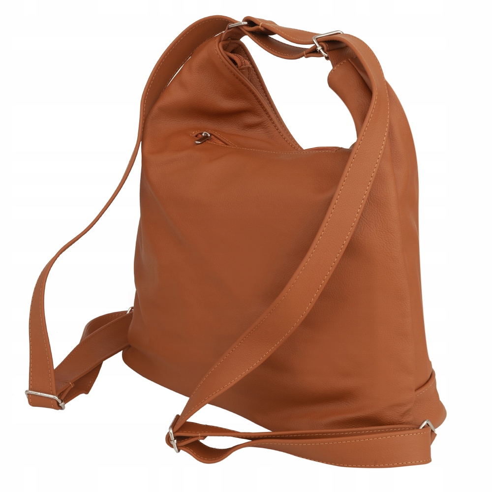 Skórzana polska modna A4 torebka 3w1 wykonana z miękkiej naturalnej skóry najwyższej jakości. Mocna i wytrzymała skóra. Torebka jednokomorowa zamykana na zamek na całej szerokości, dodatkowo w środku kieszonka na telefon + kieszeń na zamek na bocznej wewnętrznej ściance. Wnętrze wykończone mocną, materiałową podszewką. Z tyłu torebki kieszeń na zamek. Metalowe elementy wykończenia w kolorze srebrnym. Torebkę po ściągnięciu pasków można nosić jako plecak lub worek na ramieniu.