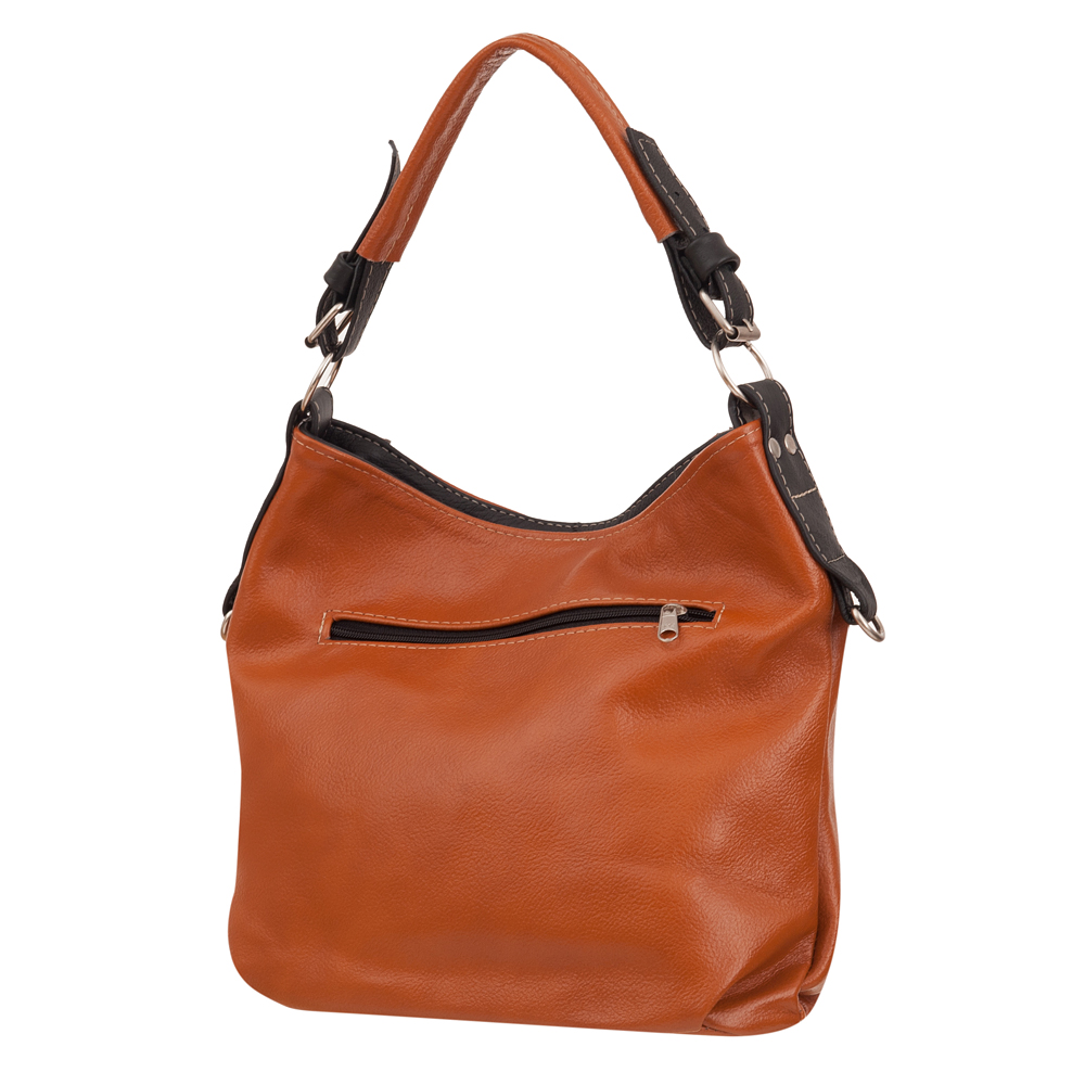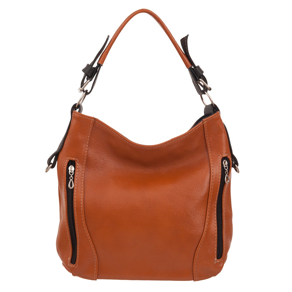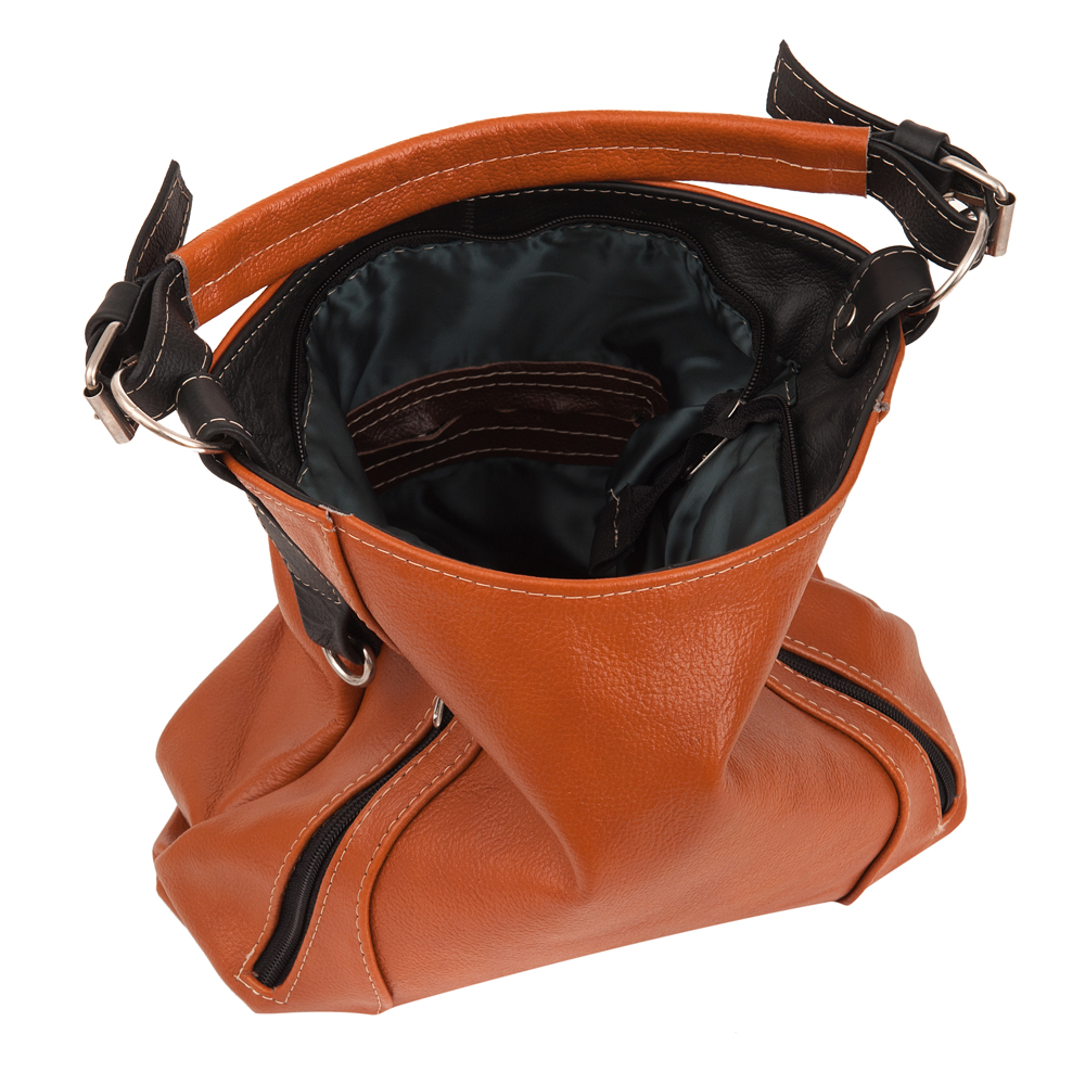 Skórzana torebka / worek wykonana w całości ze skóry naturalnej licowej. Skóra bardzo delikatnie cieniowana. Zamykana z góry na suwak. Torebka jednokomorowa. Wewnątrz jedna kieszonka na zamek oraz jedna na telefon.