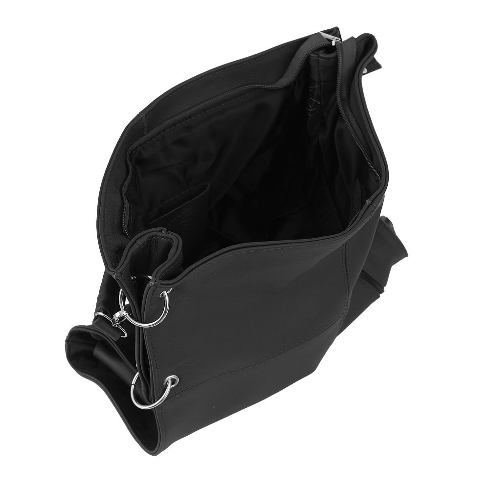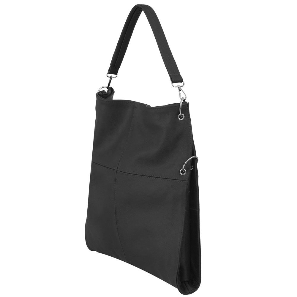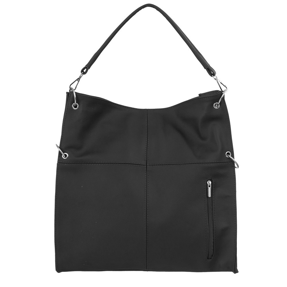 Polska skórzana torebka wykonana z naturalnej skóry licowej. Zamykana z góry na suwak. Torebka jednokomorowa przedzielona kieszenią na suwak. Wewnątrz jedna kieszonka na zamek oraz jedna na telefon. Dodatkowo z tyłu torebki pionowa kieszonka na suwak. Wnętrze wykończone trwałą podszewką dopasowną pod kolor skóry. Dodatkowy pasek z możliwością regulacji długości od 50 cm do 100 cm. Torebkę można nosić jako dużą listonoszkę doczepiając pasek do niższych obręczy.
