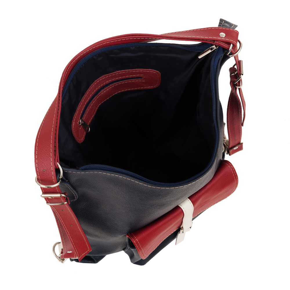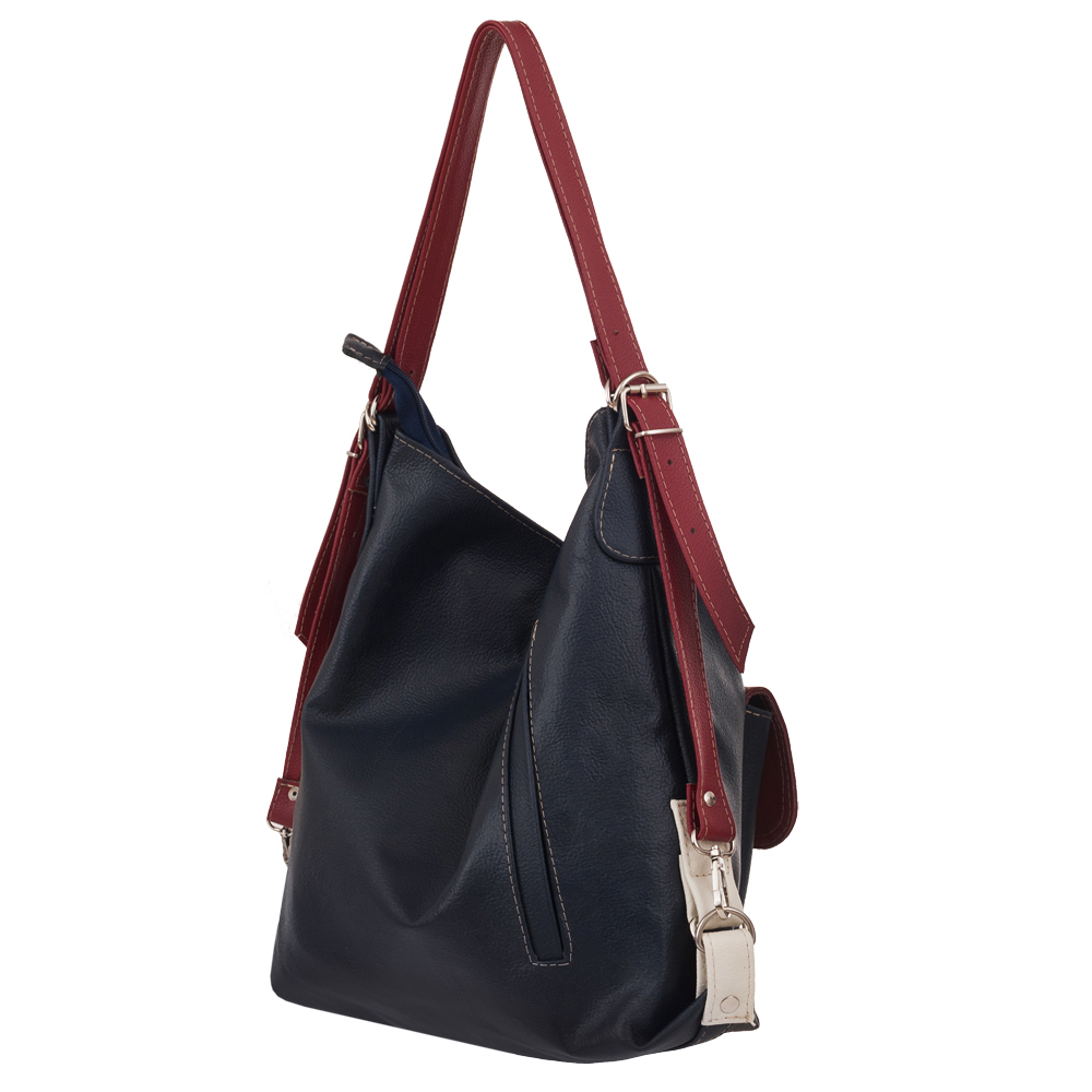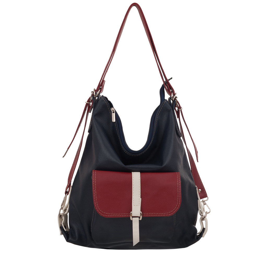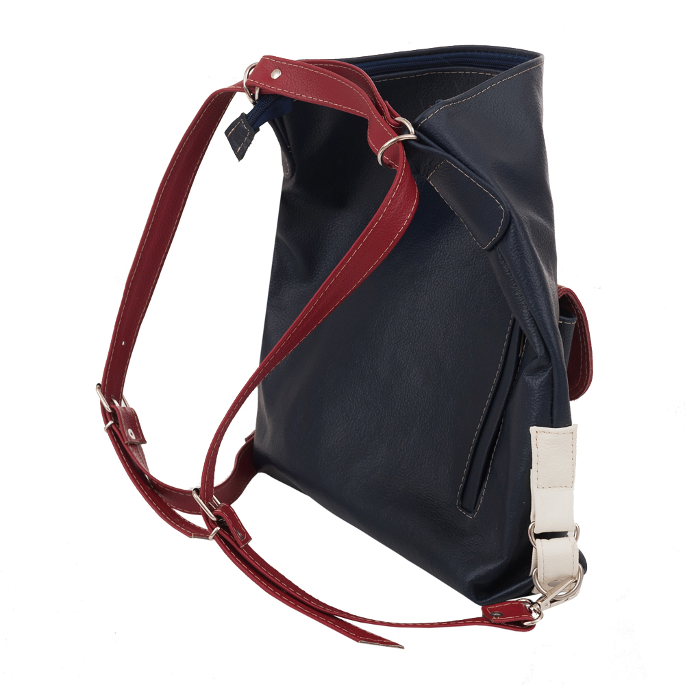 Polska skórzana torebka / plecak wykonana w 100% z miękkiej skóry naturalnej. Zamykana z góry na suwak. Torebka jednokomorowa. Wewnątrz jedna kieszonka na zamek oraz jedna na telefon. Z przodu kieszonka pod klapą na magnes. Dodatkowo z tyłu pionowa kieszonka na suwak. Wnętrze wykończone trwałą podszewką. Po zaciągnięciu pasków torebkę można nosić jako plecak. Duża możliwość regulacji długości pasków dzięki przepinanym karabińczykom od 40 cm do nawet 77 cm.