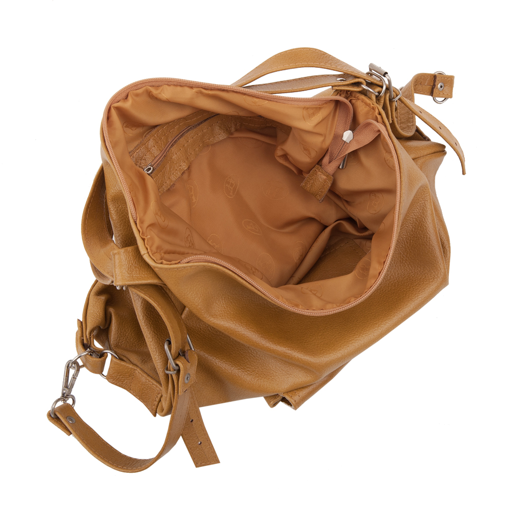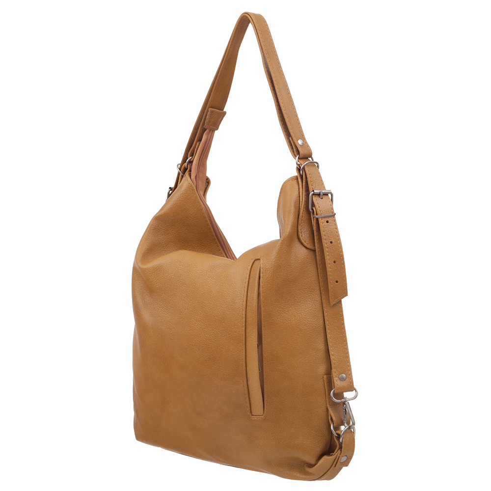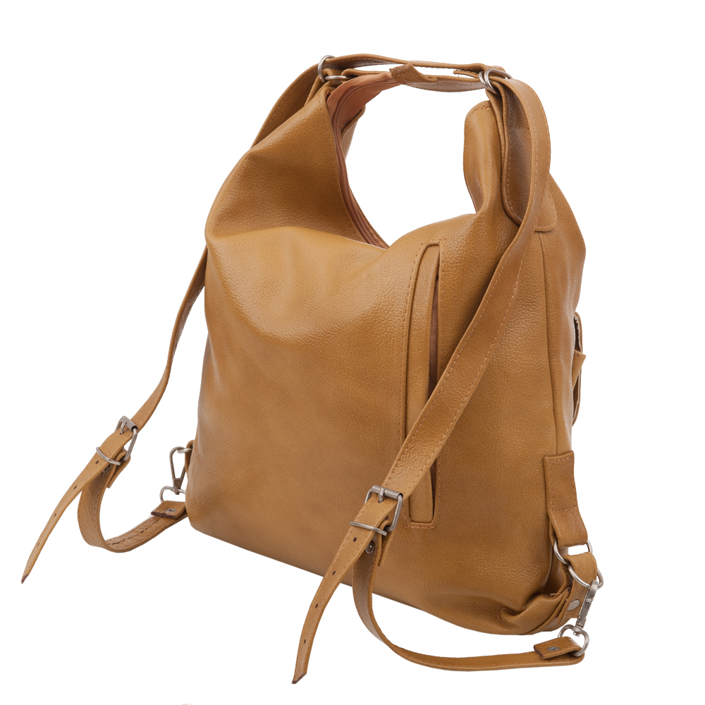 Polska skórzana torebka / plecak wykonana w 100% ze skóry naturalnej. Zamykana z góry na suwak. Torebka jednokomorowa. Wewnątrz jedna kieszonka na zamek oraz jedna na telefon. Z przodu kieszonka pod klapą na magnes. Dodatkowo z tyłu pionowa kieszonka na suwak. Wnętrze wykończone trwałą podszewką. Po zaciągnięciu pasków torebkę można nosić jako plecak. Duża możliwość regulacji długości pasków dzięki przepinanym karabińczykom od 40 cm do nawet 77 cm.