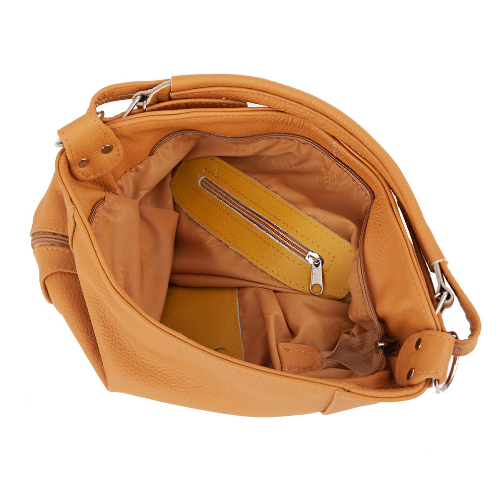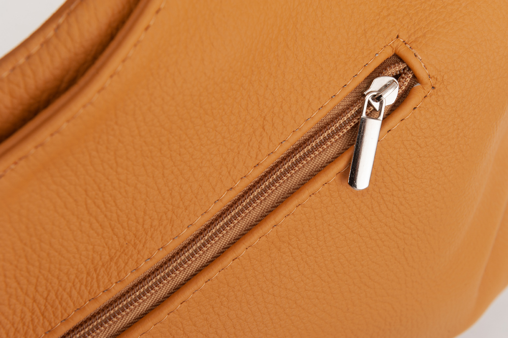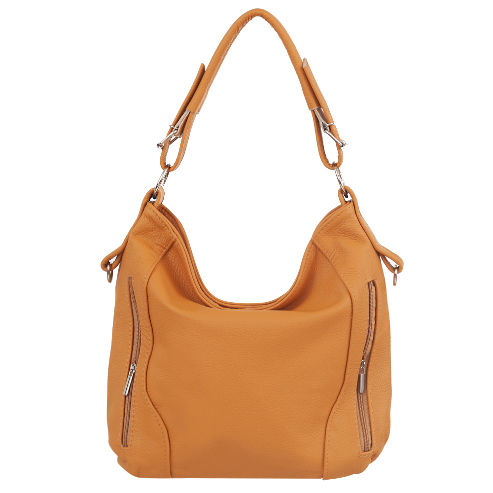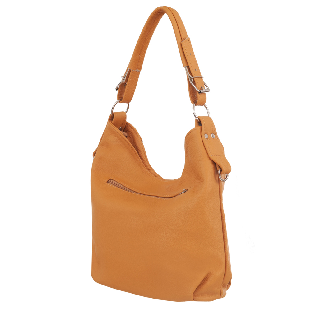 Skórzana torebka / worek wykonana w całości ze skóry naturalnej licowej. Skóra bardzo delikatnie cieniowana. Zamykana z góry na suwak. Torebka jednokomorowa. Wewnątrz jedna kieszonka na zamek oraz jedna na telefon.