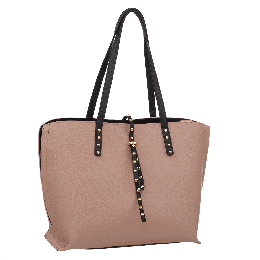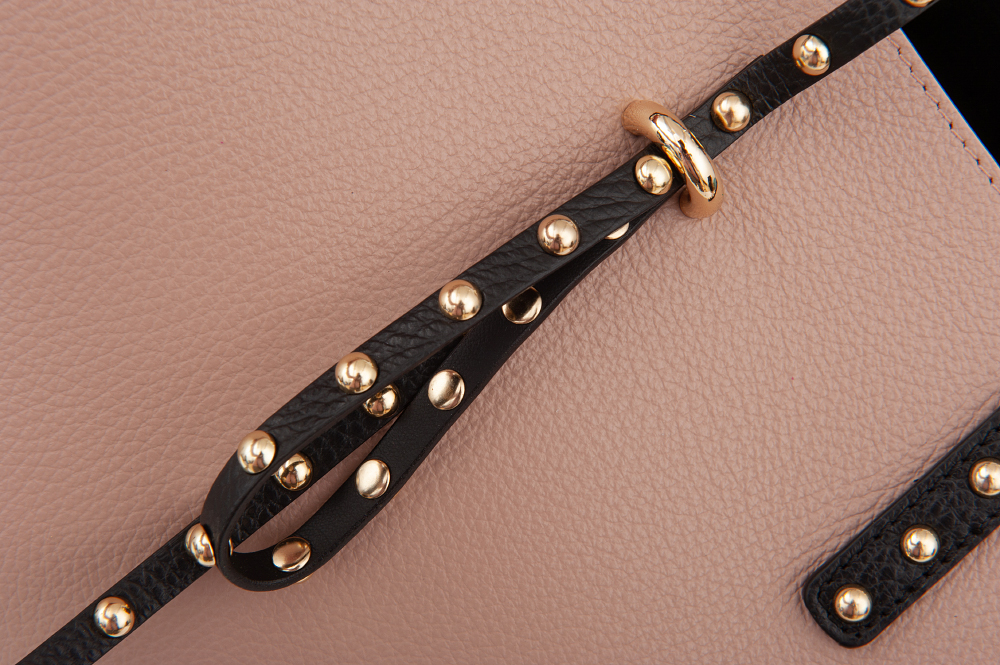VERA PELLE włoska modna skórzana A4 torebka w kształcie zaokrąglonego trapezu z ozdobnymi dżetami wykonana z wysokogatunkowej naturalnej skóry. Wygodny dostęp do środka, łatwe zapięcie na magnes. Torebka jednokomorowa, od góry zamykana na zamek. Wewnątrz duża komora na zamek. Torebka od środka wykończona mocną podszewką. Metalowe elementy w kolorze złotym. Dno usztywnione i podbite metalowymi nóżkami chroniącymi spód przed zabrudzeniem i uszkodzeniami. Torebką swobodnie można nosić na ramieniu, a w komplecie mamy dodatkowy długi pasek z możliwością regulowania długości.