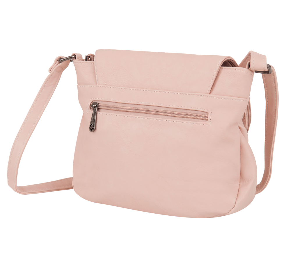 Modna torebka wykonana z wysokogatunkowej miękkiej skóry ekologicznej. Zamykana na suwak + klapa na magnes. Torebka jednokomorowa przedzielona dużą kieszenią na suwak na całą szerokość torebki + w środku jedna kieszonka na zamek oraz jedna na telefon. Wnętrze wykończone trwałą podszewką kolorystycznie dopasowaną do skóry. Długi, regulowany pasek umożliwia wygodne noszenie na ramieniu lub przez ramię jak listonoszkę. Dodatkowa kieszeń w klapie torebki na suwaki + kieszonka na suwak z tyłu.