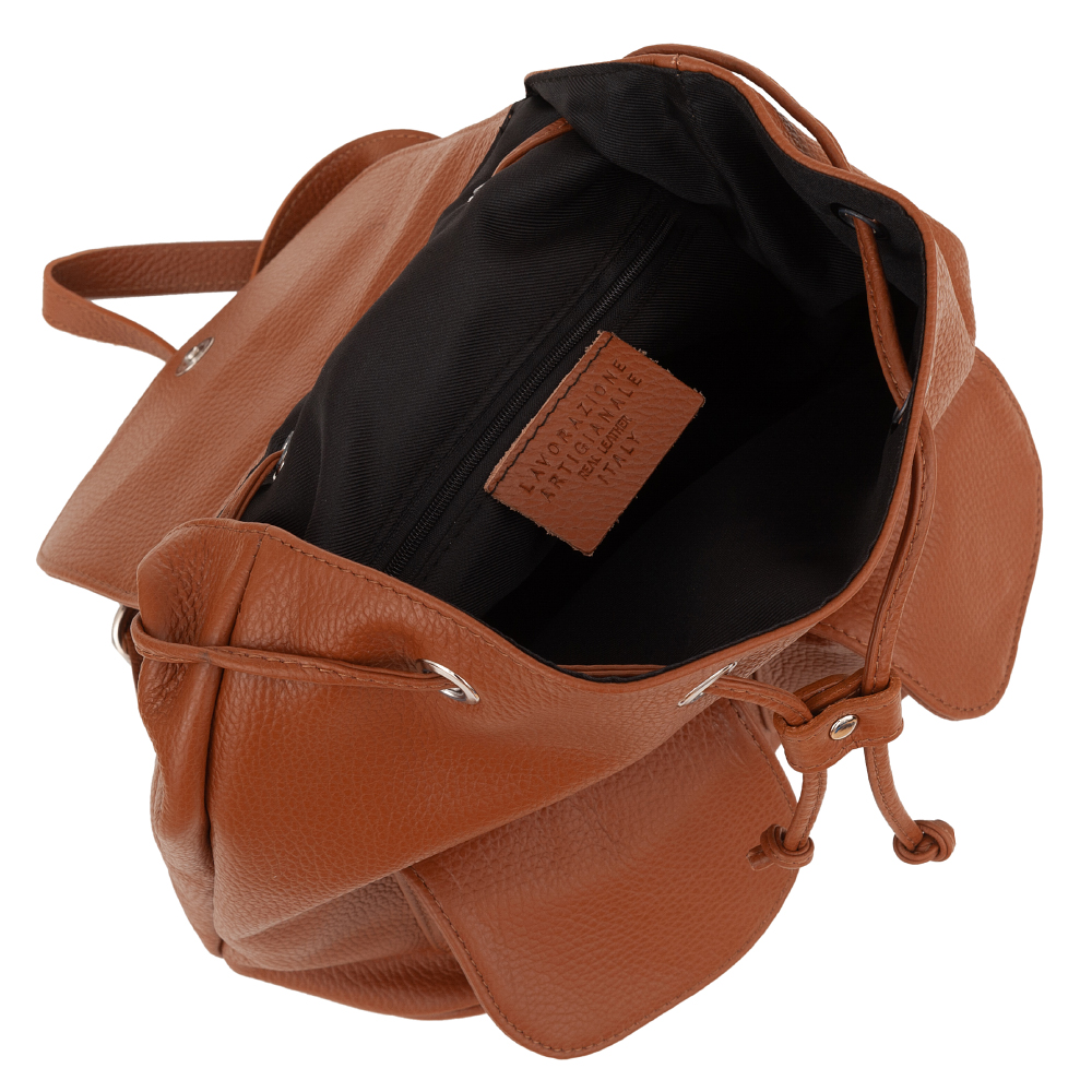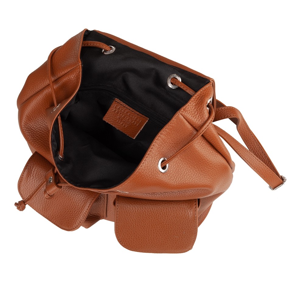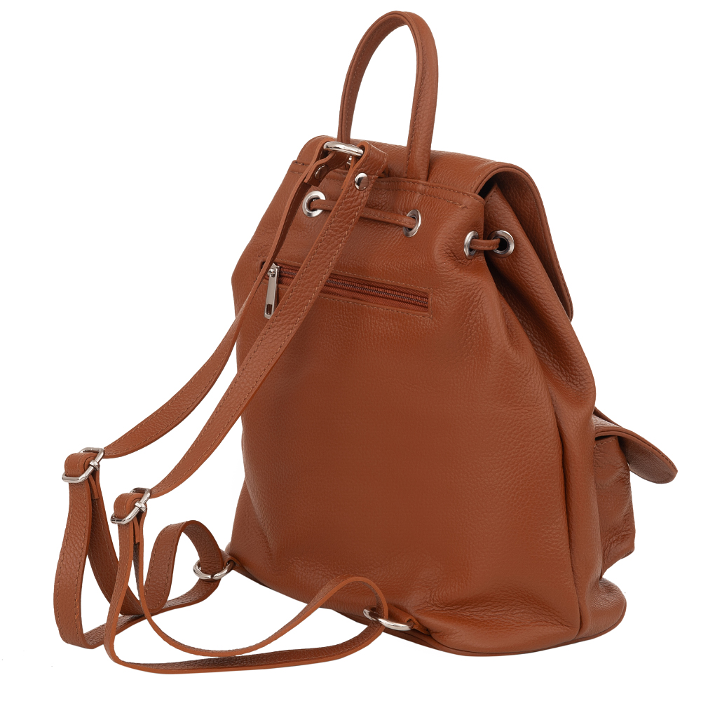 FIRENZE MADE IN ITALY - Włoski uniwersalny i ponadczasowy model. Skórzany porządny plecak wykonany z miękkiej skóry naturalnej. Zamykany na klapę z magnesem + skórzany sznurek do zaciągania. Torba jednokomorowa. Wewnątrz jedna kieszonka na zamek. Z przodu plecaka 2 x kieszonka na magnes + z tyłu kieszeń na zamek. Wnętrze wykończone trwałą mocną, materiałową podszewką. Możliwość regulacji długości pasków. Elementy metalowe w kolorze srebrnym. Dno usztywnione. Skóra odporna na zarysowania.
