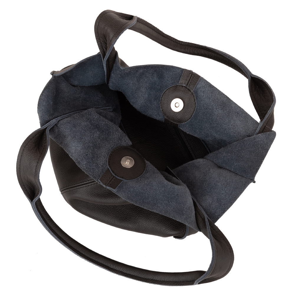Skórzana A4 torebka wykonana w całości z miękkiej włoskiej skóry naturalnej. Zamykana z góry na magnes. Torebka jednokomorowa. Wewnątrz jedna duża kieszonka na zamek. Wnętrze modnie wykończone surową skórą naturalną. Dno torebki delikatnie usztywnione. Torebkę swobodnie można nosić na ramieniu.