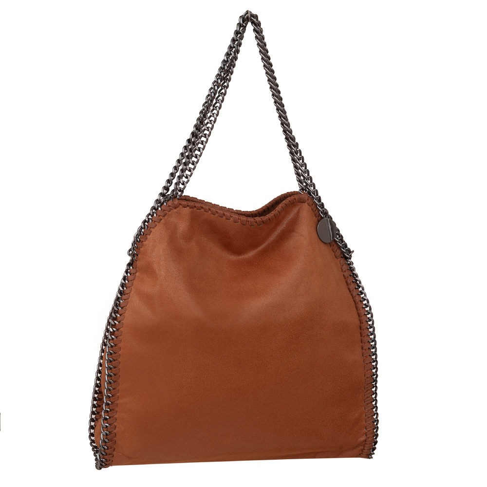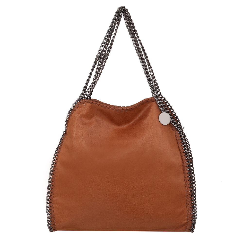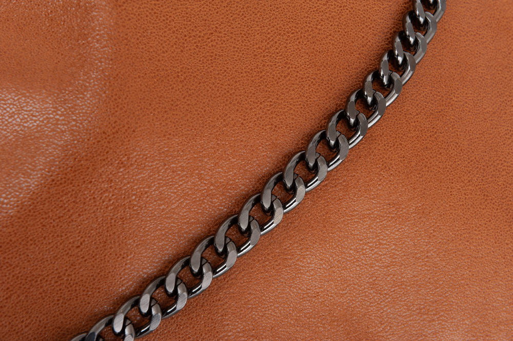 Modna torebka wykonana z miękkiej skóry ekologicznej wysokiej jakości. Zamykana z góry na suwak. Torebka dwukomorowa przedzielona dużą kieszenią na suwak na środku. Wewnątrz dodatkowo jedna kieszonka na zamek oraz dwie dodatkowe kieszonki. Wnętrze wykończone trwałą, czarną podszewką. Łańcuchy w kolorze inox (srebrny).