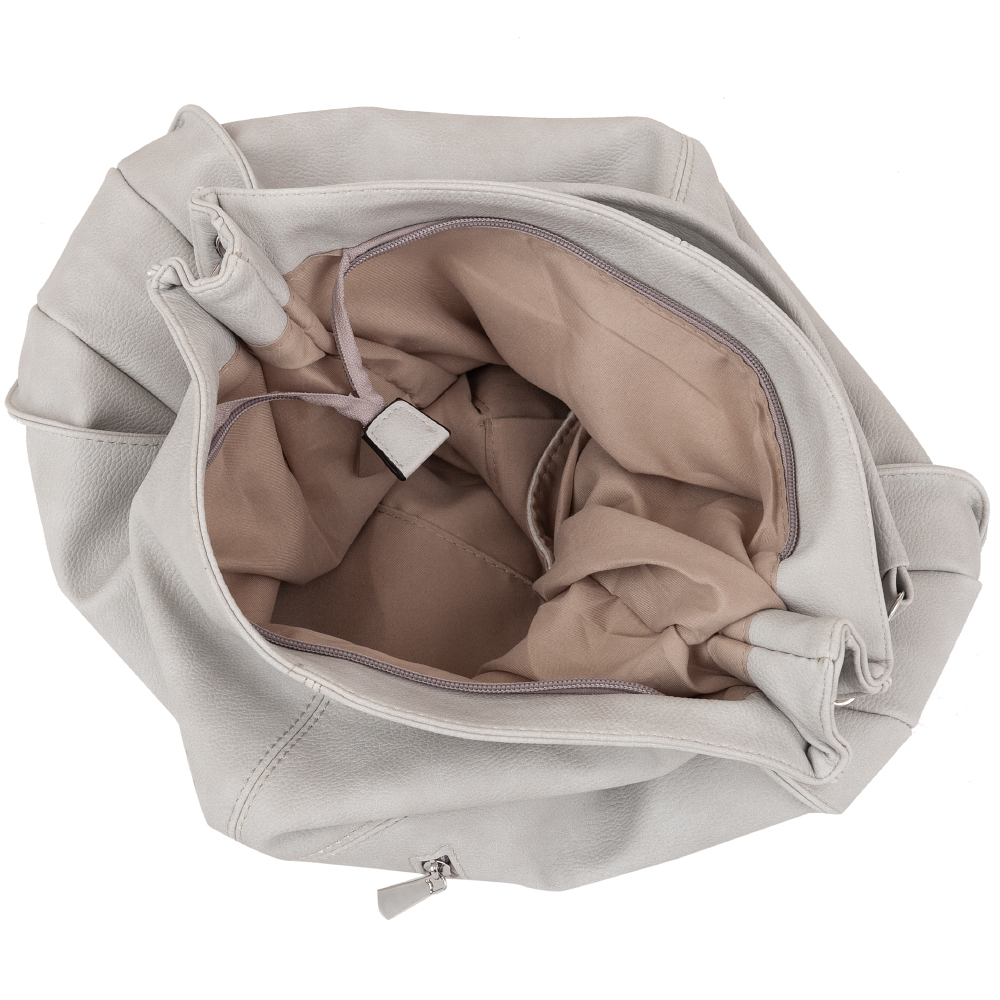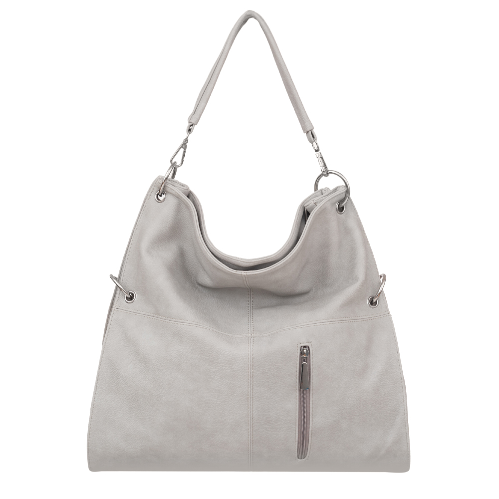 Modna torebka A4 wykonana z miękkiej skóry ekologicznej wysokiej jakości. Zamykana z góry na suwak. Torebka jednokomorowa przedzielona kieszenią na suwak na środku. Wewnątrz jedna kieszonka na zamek oraz jedna na telefon. Dodatkowo z tyłu torebki pionowa kieszonka na suwak. Wnętrze wykończone trwałą podszewką dopasowaną pod kolor skóry. Dodatkowy pasek z możliwością regulacji. Torebkę można nosić jako dużą listonoszkę doczepiając pasek do niższych obręczy.