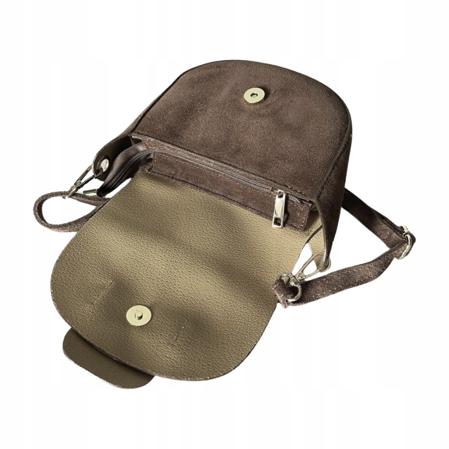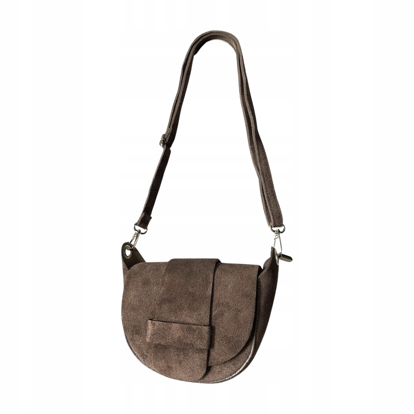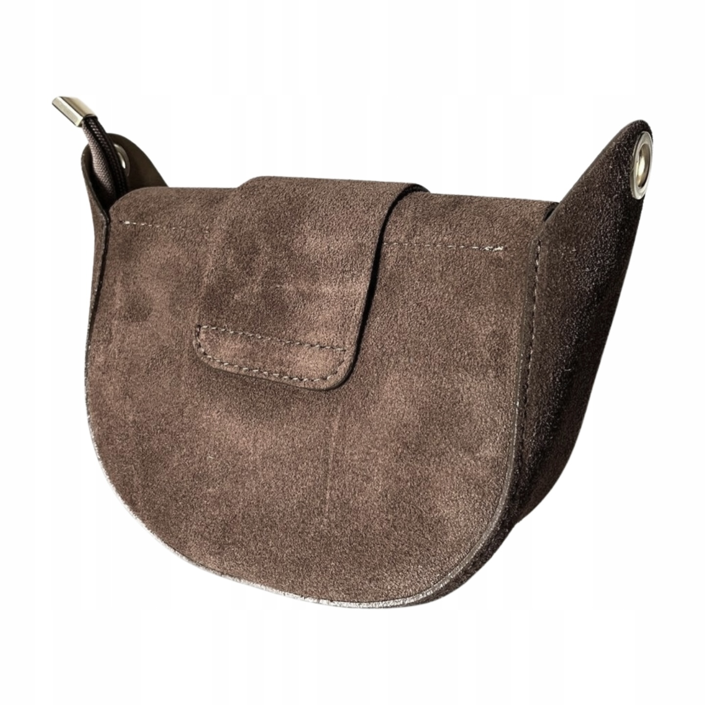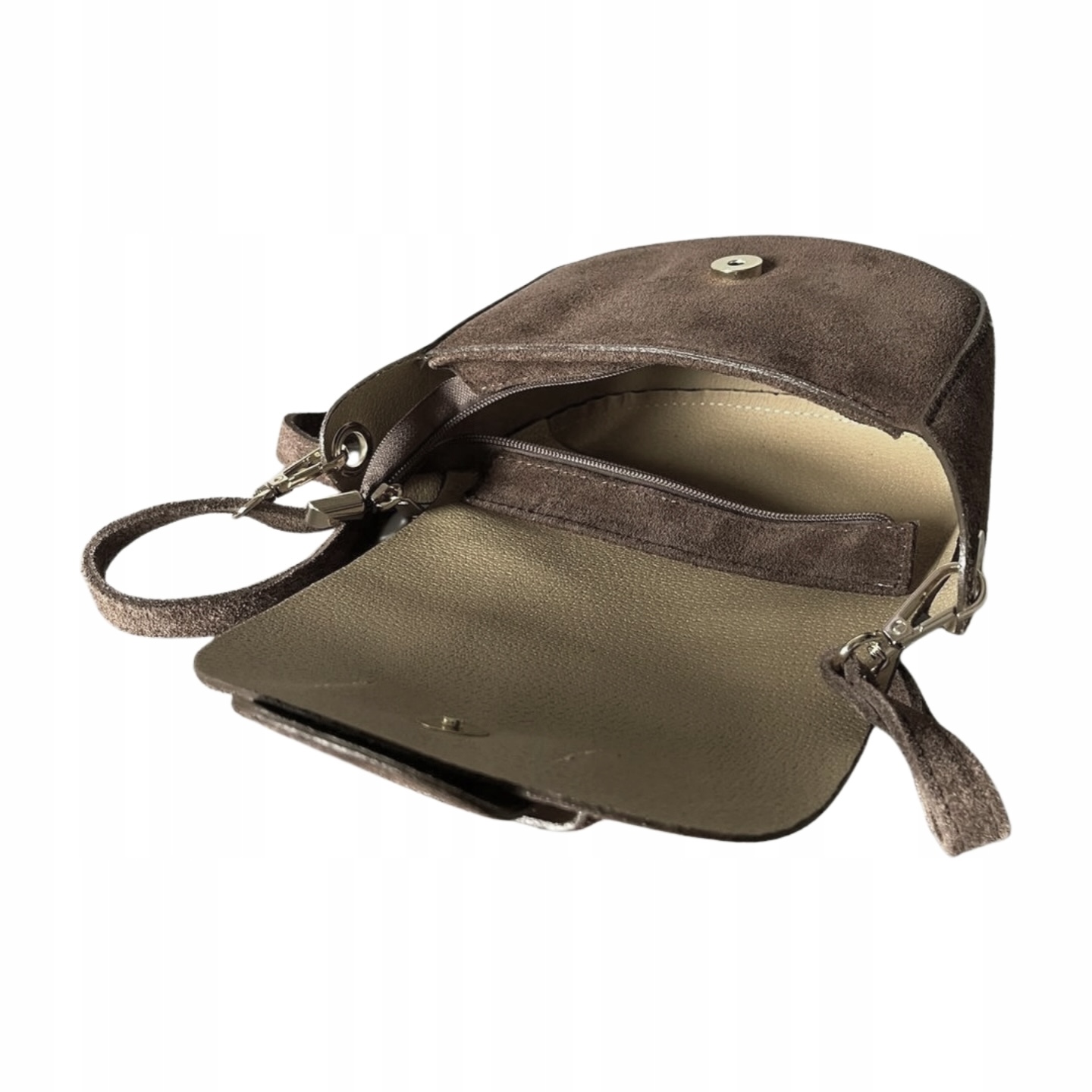 Vera Pelle - Włoska taupe cappuccino / brąz skórzana torebka listonoszka wykonana z wysokogatunkowej naturalnej skóry zamszowej.