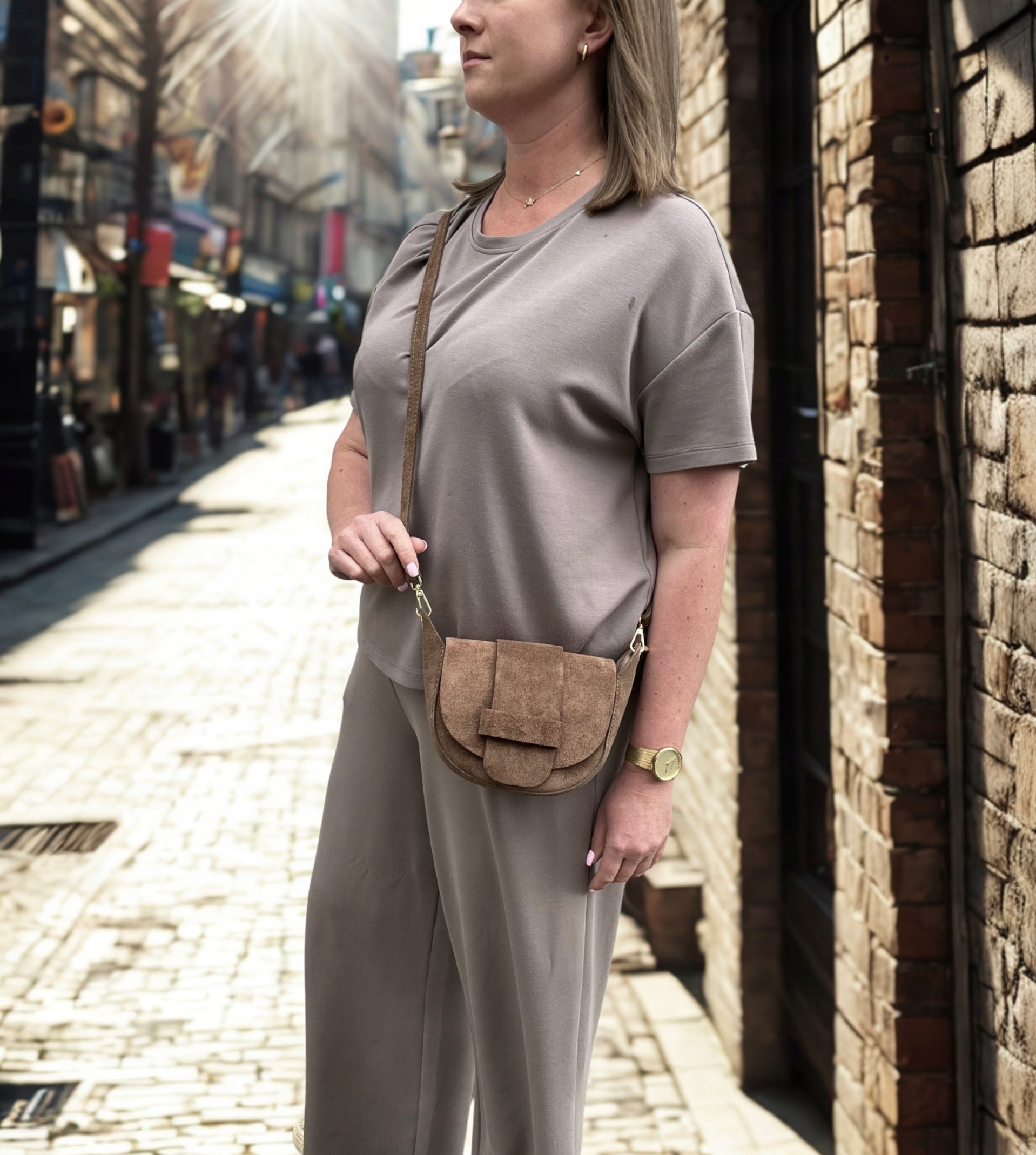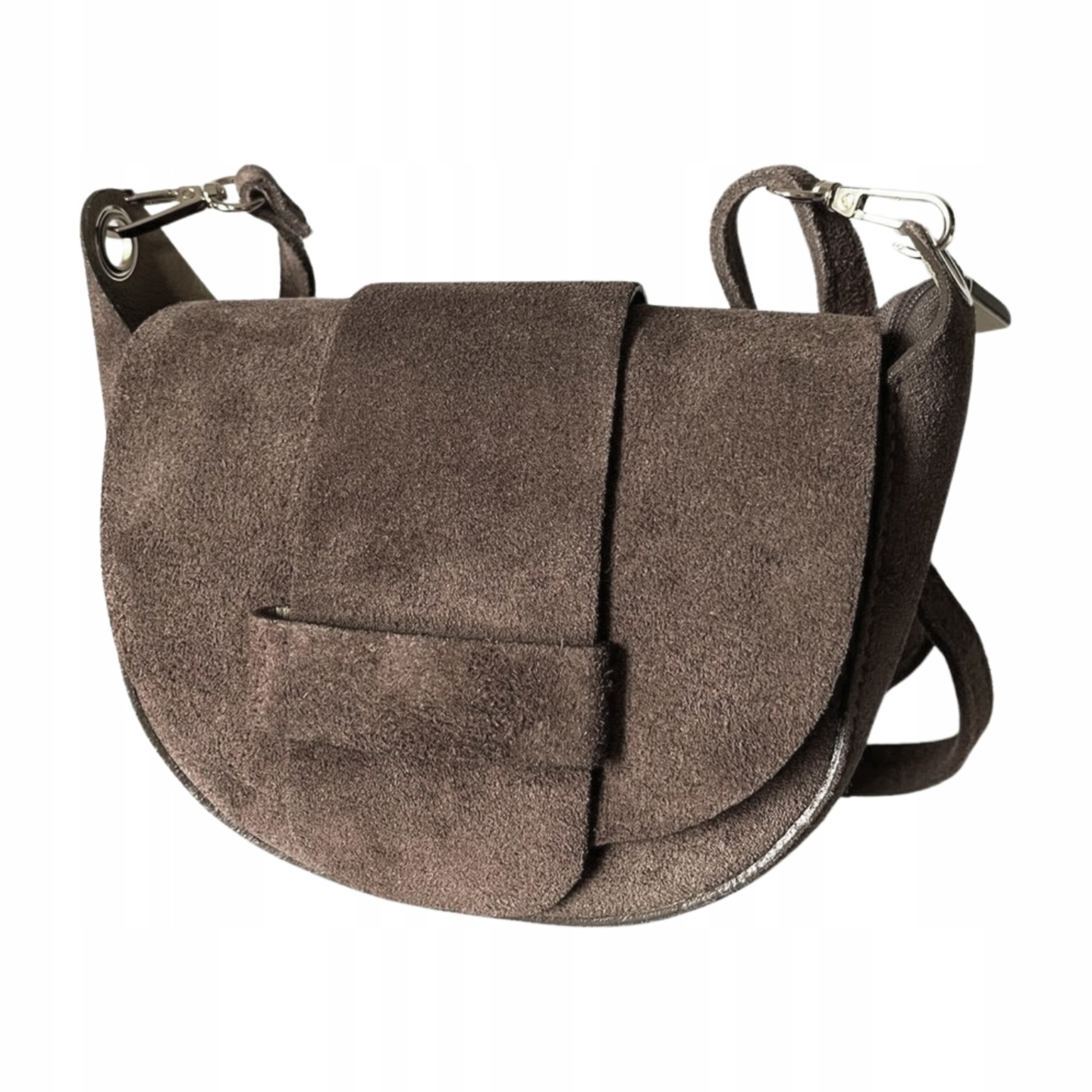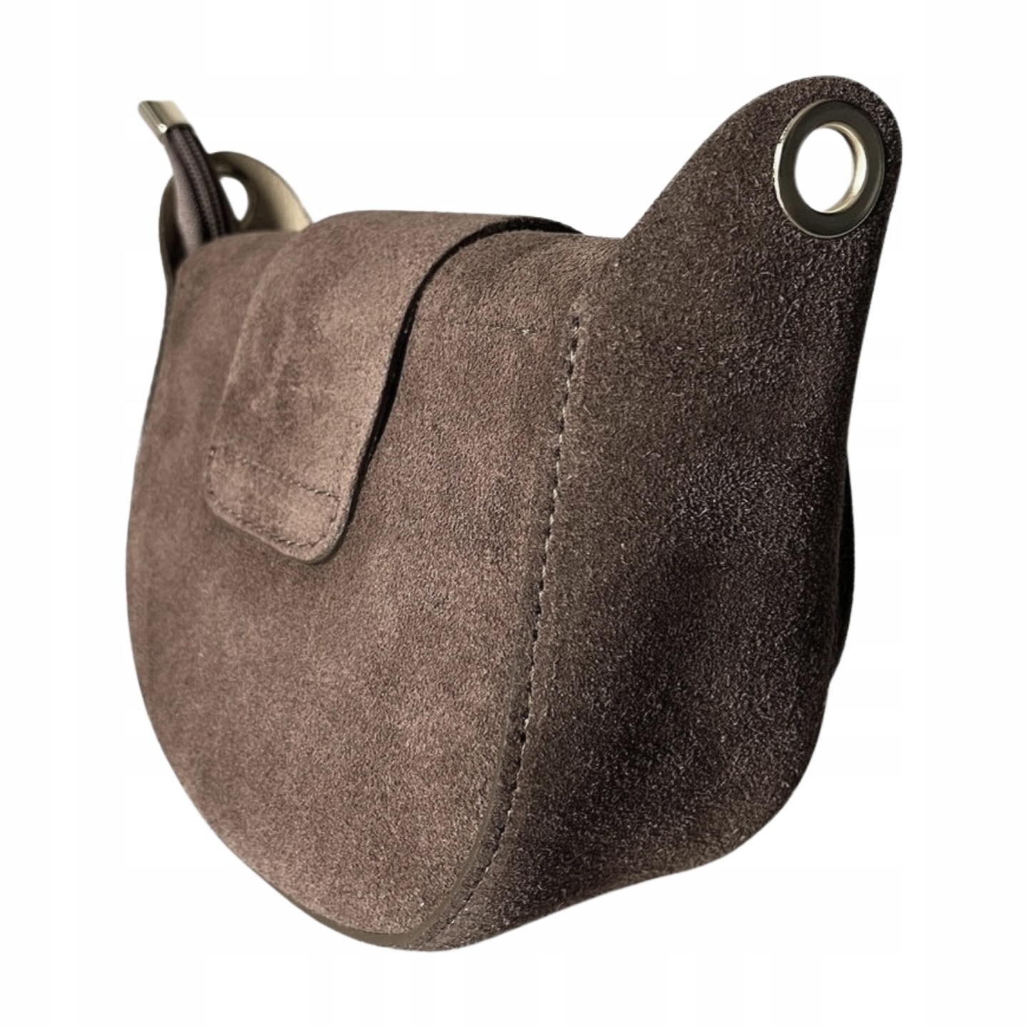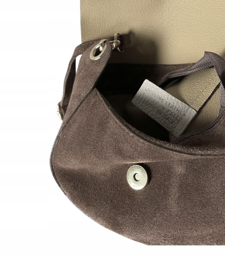 Vera Pelle - Włoska taupe cappuccino / brąz skórzana torebka listonoszka wykonana z wysokogatunkowej naturalnej skóry zamszowej.