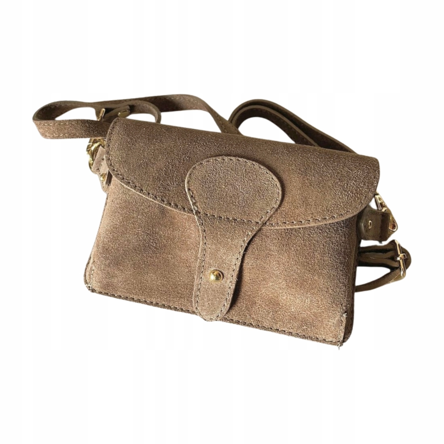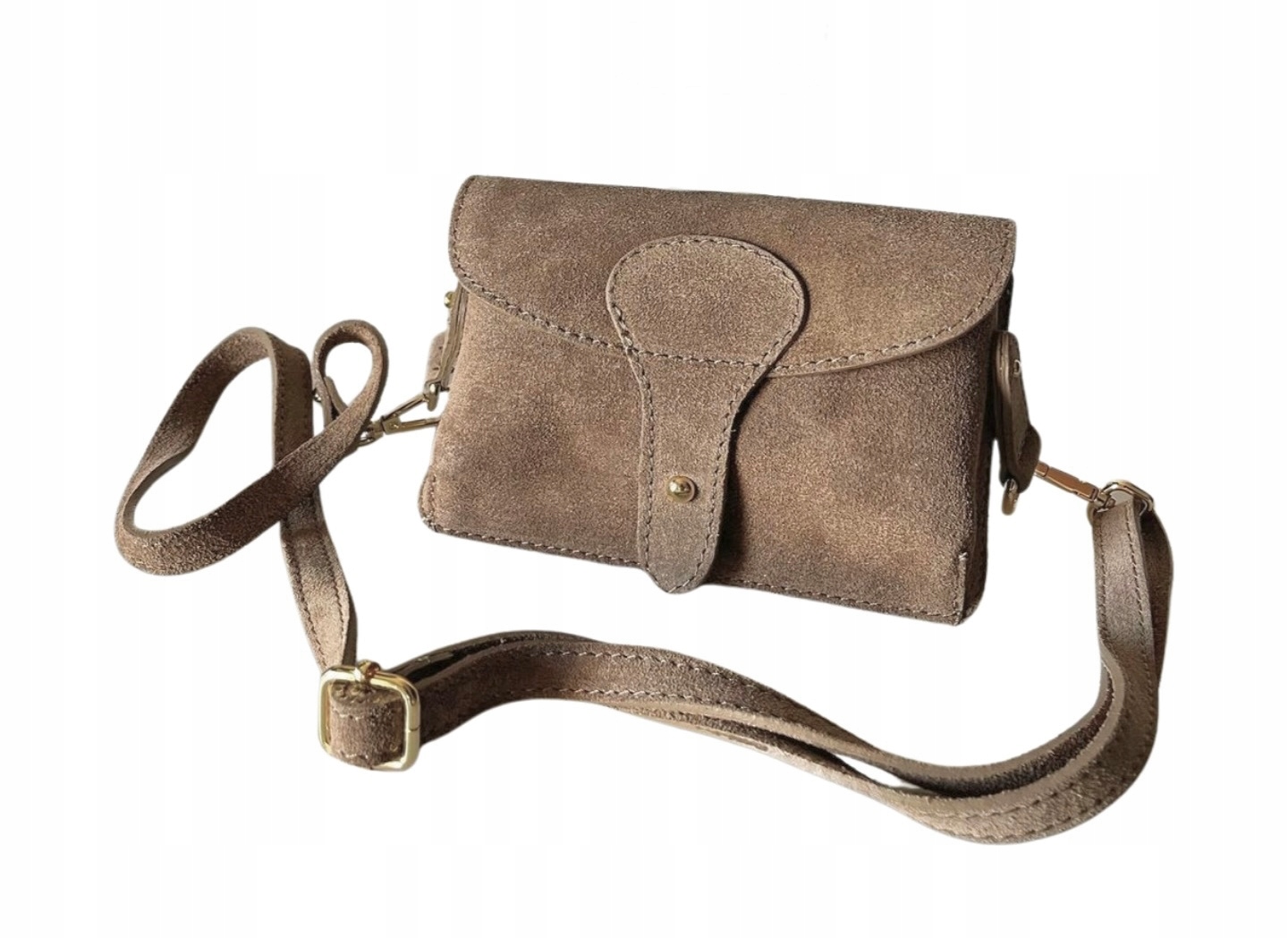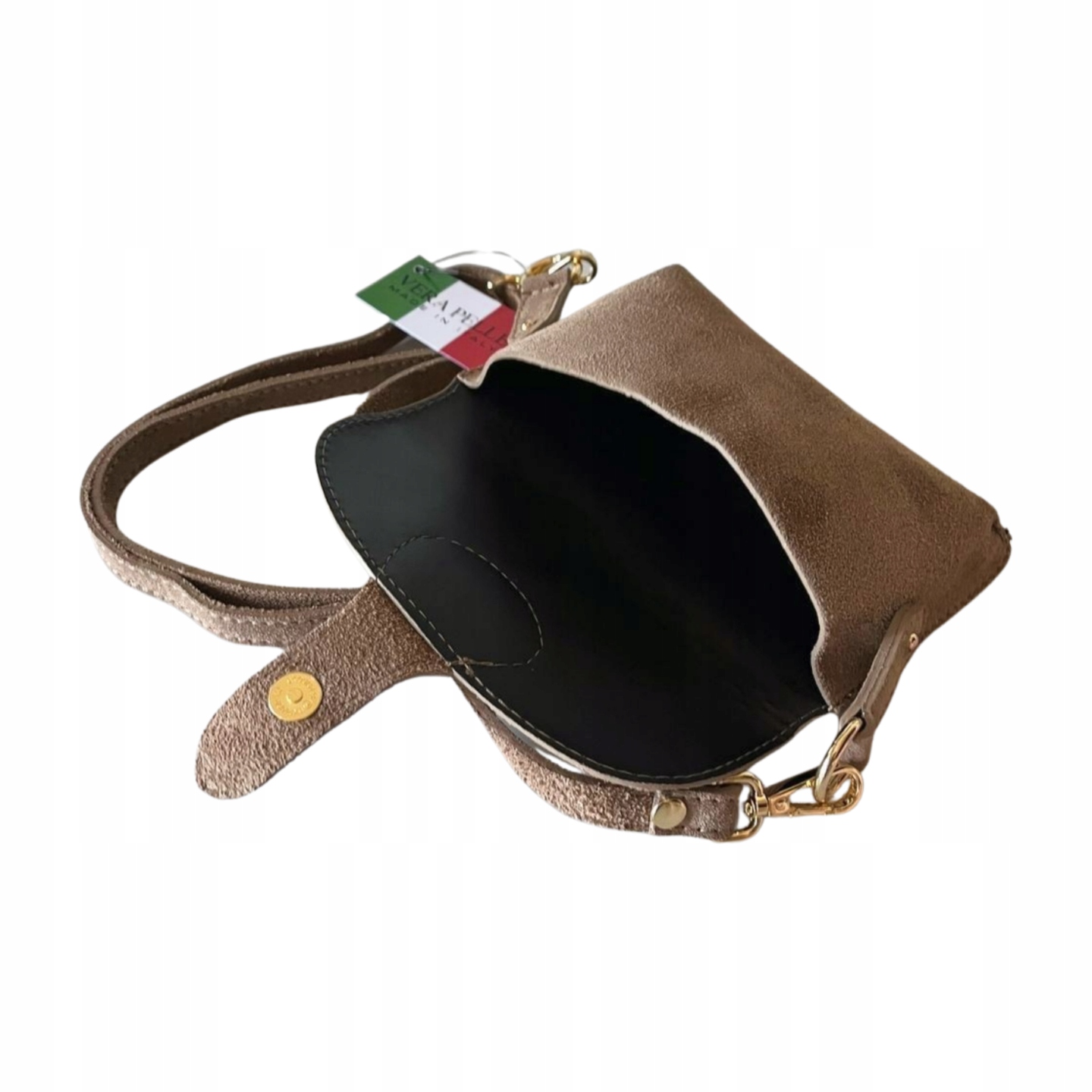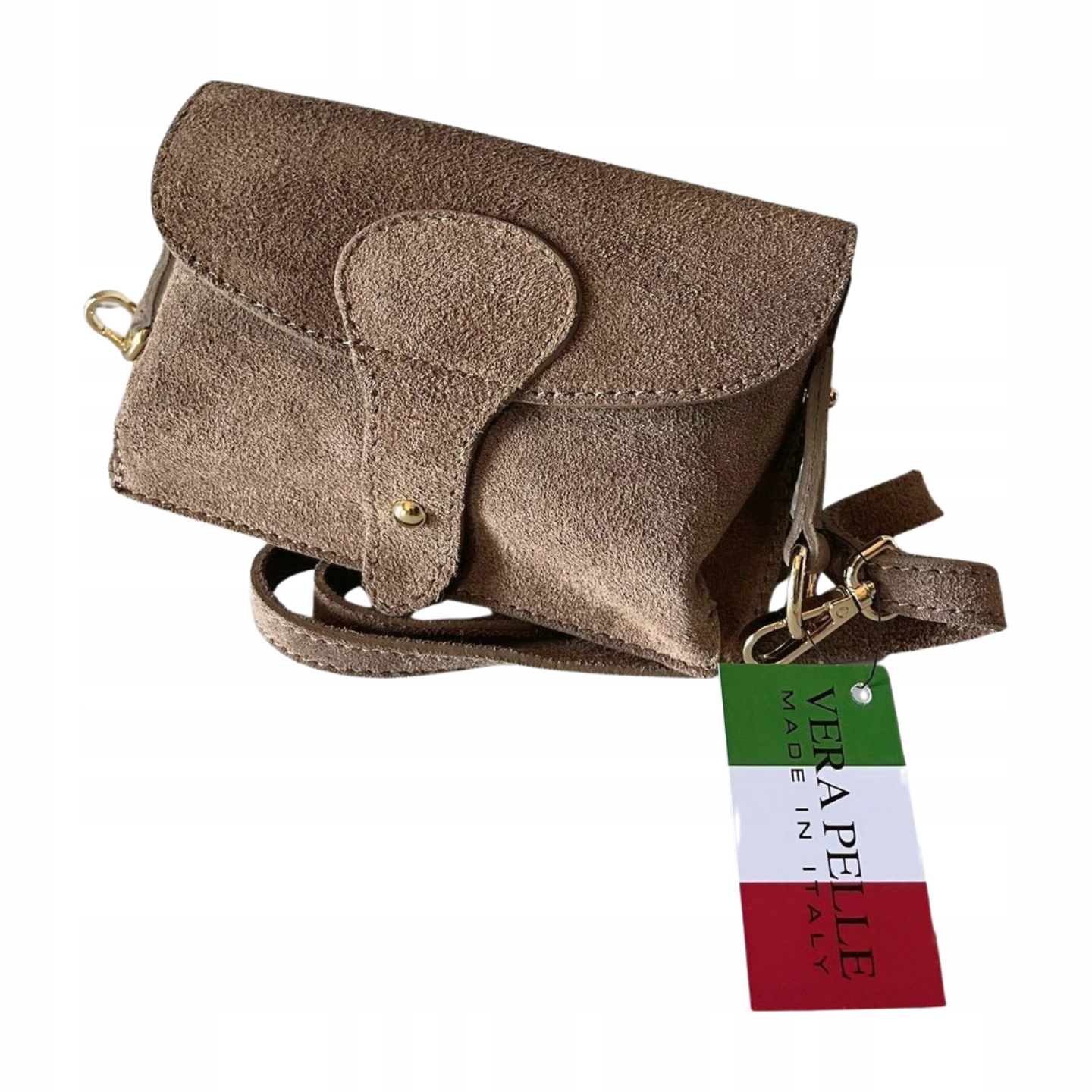 Vera Pelle - Włoska skórzana torebka listonoszka wykonana z wysokogatunkowej naturalnej skóry zamszowej.