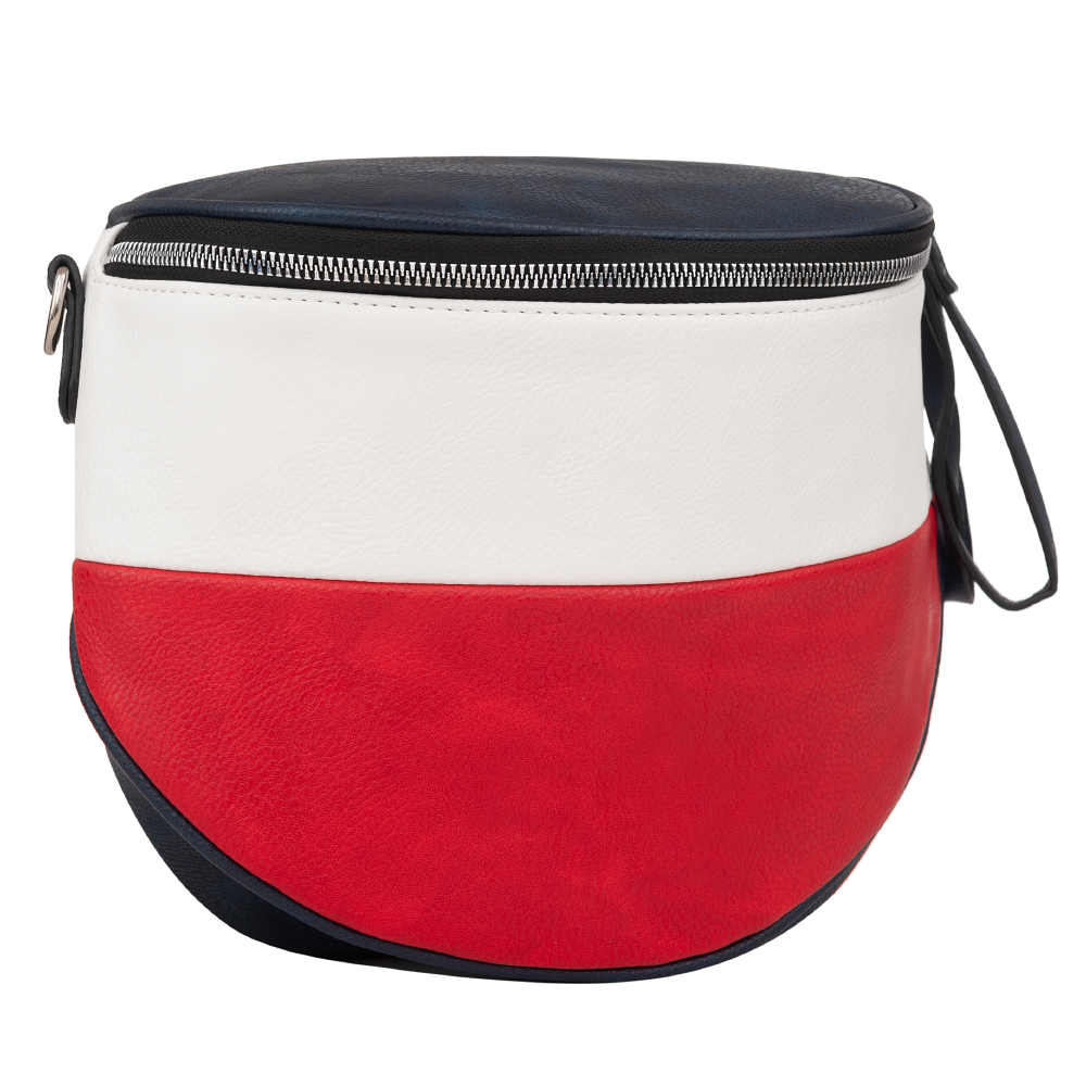 NERKA wykonana z wysokogatunkowej miękkiej skóry ekologicznej najwyższej jakości. Modne połączenie kolorów. Zamykana z góry na zamek na całej szerokości.